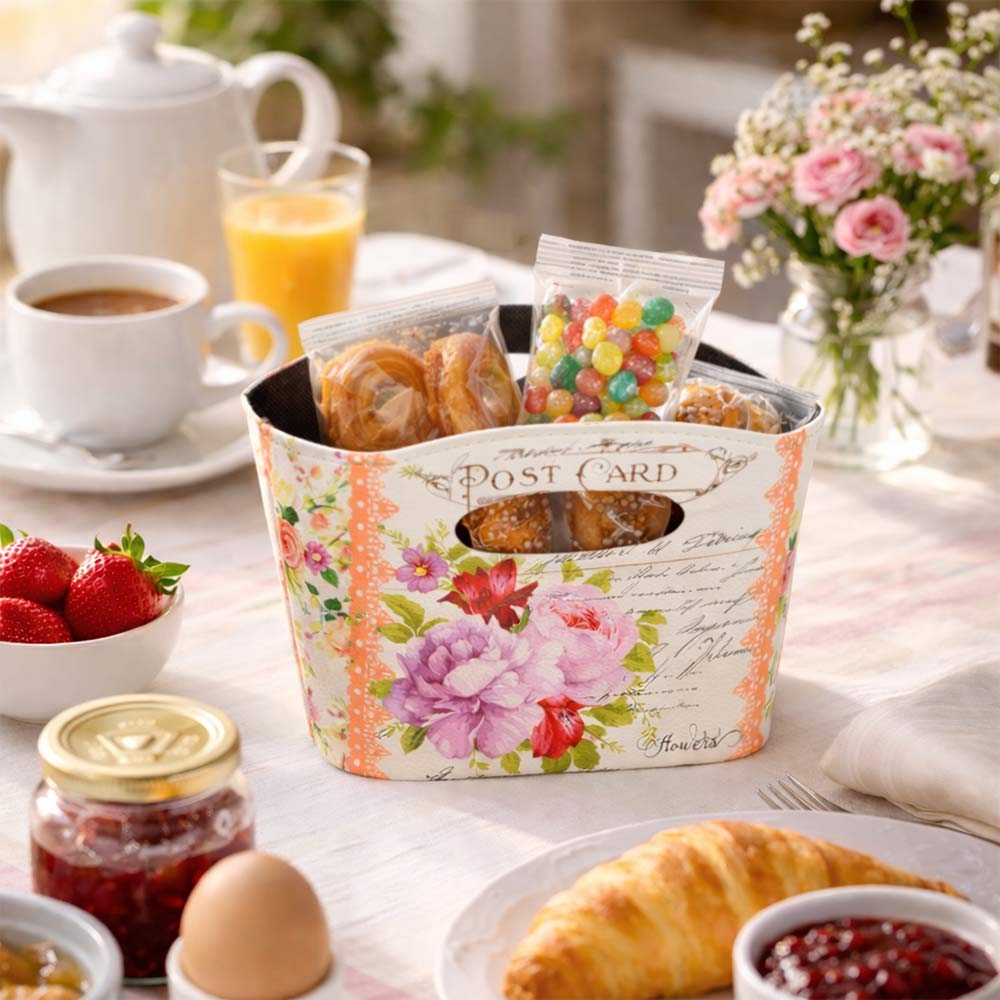 Set da 3 Borsette Flowers: decorazioni pratiche e versatili con manici integrati.