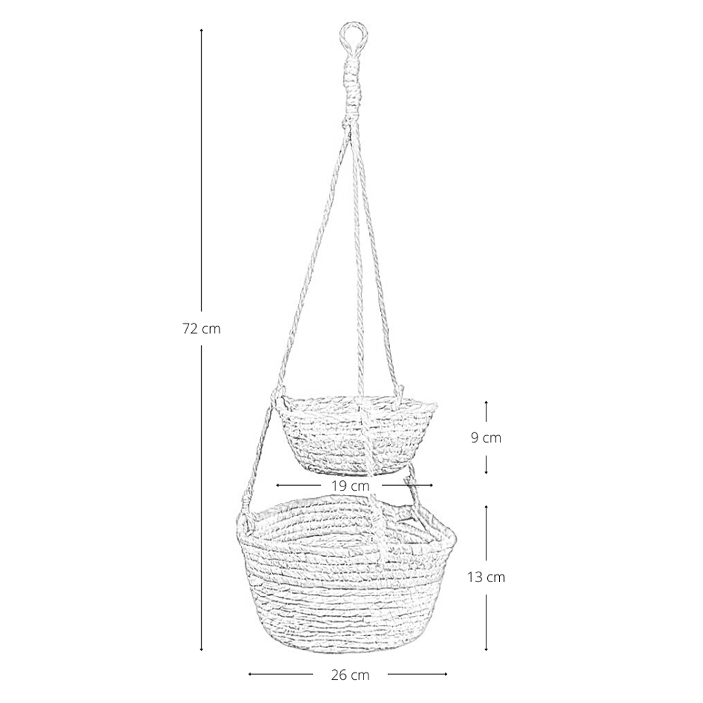 Con la sua struttura a due livelli, può essere utilizzato non solo come porta piante sospeso, ma anche come pratico portaoggetti decorativo per piccoli accessori, oggetti di uso quotidiano o elementi ornamentali.