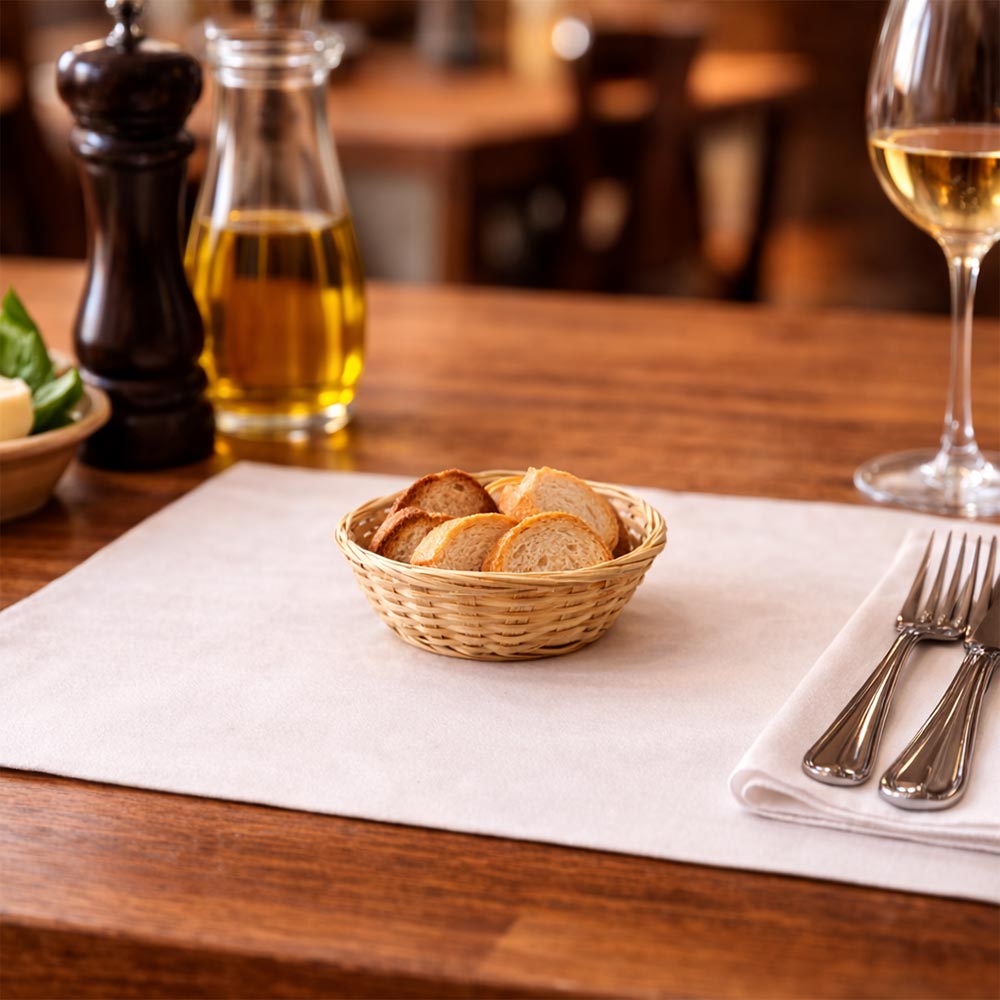 La particolare forma rotonda a nido, con bordi sagomati e struttura compatta, li rende perfetti sia come espositori sia come contenitori decorativi. Ideali per pane, bomboniere, confezioni regalo, prodotti artigianali o piccoli oggetti.