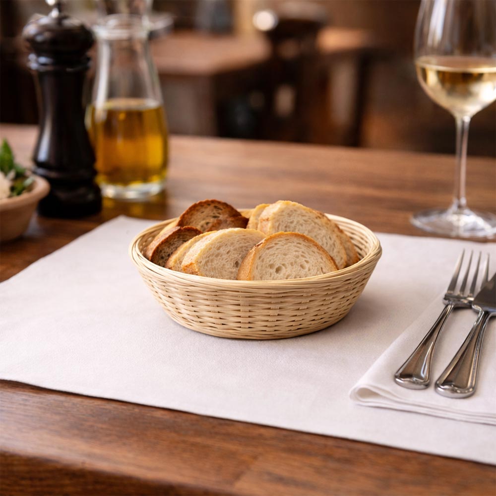 La particolare forma rotonda a nido, con bordi sagomati e struttura compatta, li rende perfetti sia come espositori sia come contenitori decorativi. Ideali per pane, bomboniere, confezioni regalo, prodotti artigianali o piccoli oggetti.