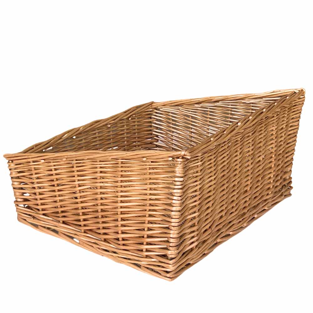 Cesto espositore quadrato in vimini, realizzato a mano con intreccio in legno di vimini.