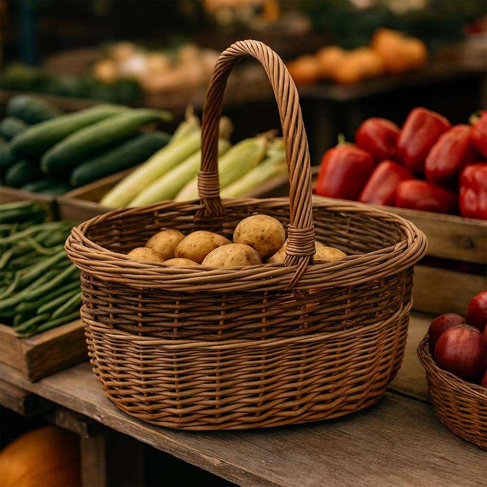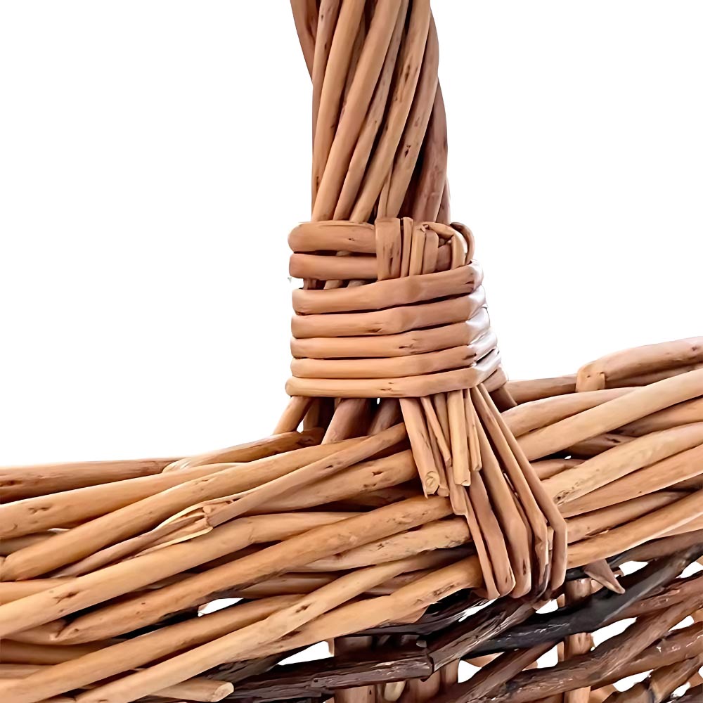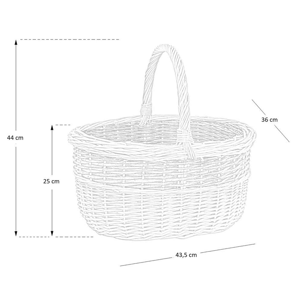 Cesto paniere ovale con manico modello Sara, realizzato a mano in vimini intrecciato.