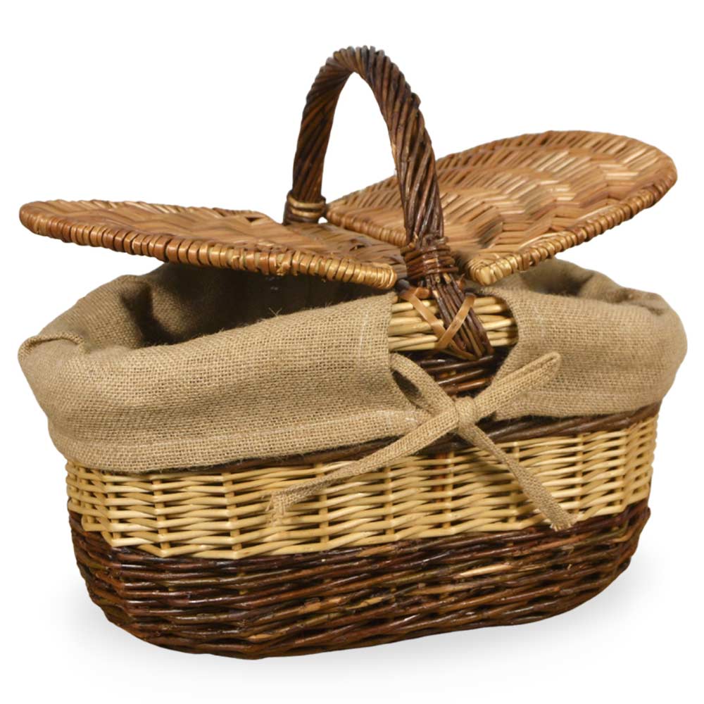 Cesto paniere Carmen ovale bicolore, intrecciato a mano in pregiato vimini.