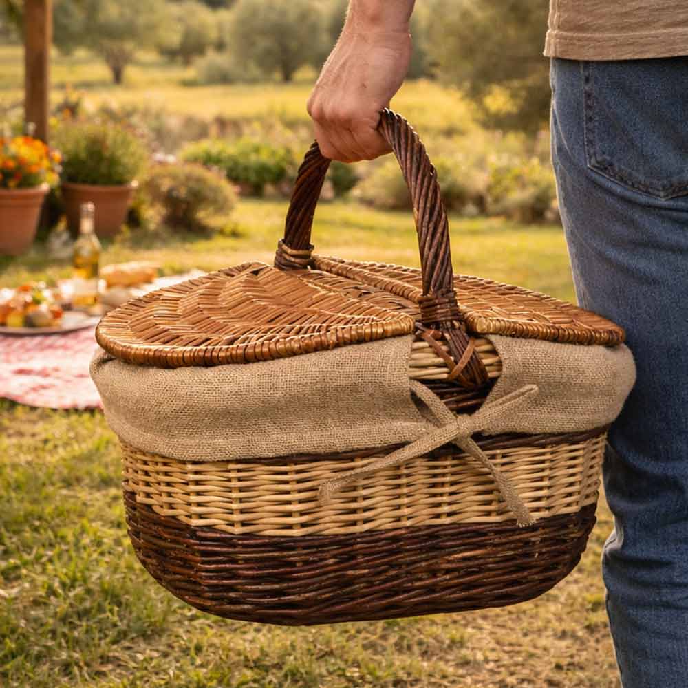 Il modello Carmen si distingue per il rivestimento completo interno in juta naturale, che protegge il contenuto e dona un elegante tocco rustico.