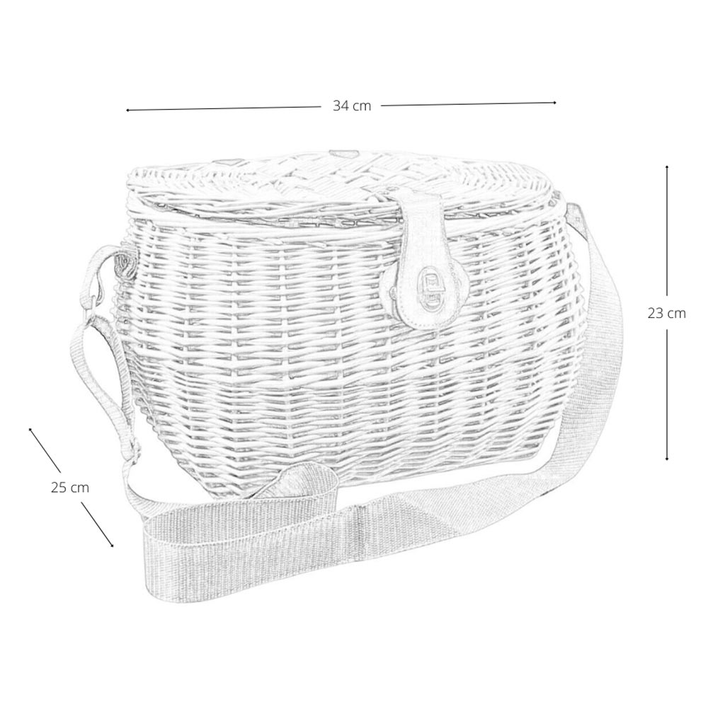 Dimensioni: lunghezza 34 cm, larghezza 25 cm, altezza del cesto 23 cm. Con portata da 3,5 kg.