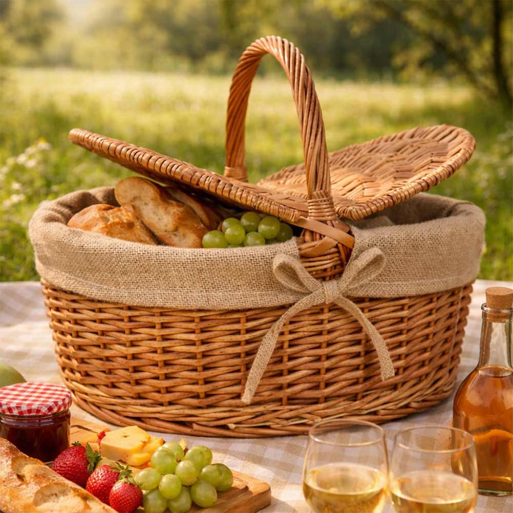 Cesto picnic campagnola Grande, intrecciato a mano in pregiato vimini.