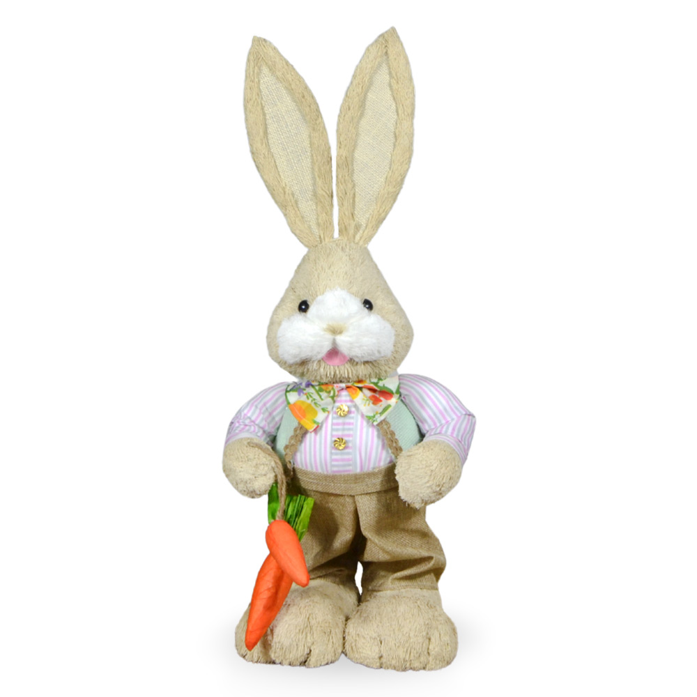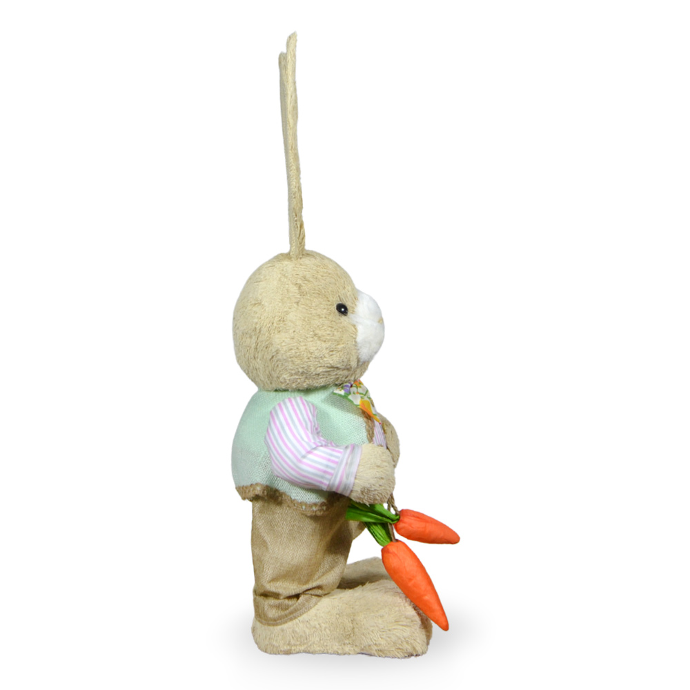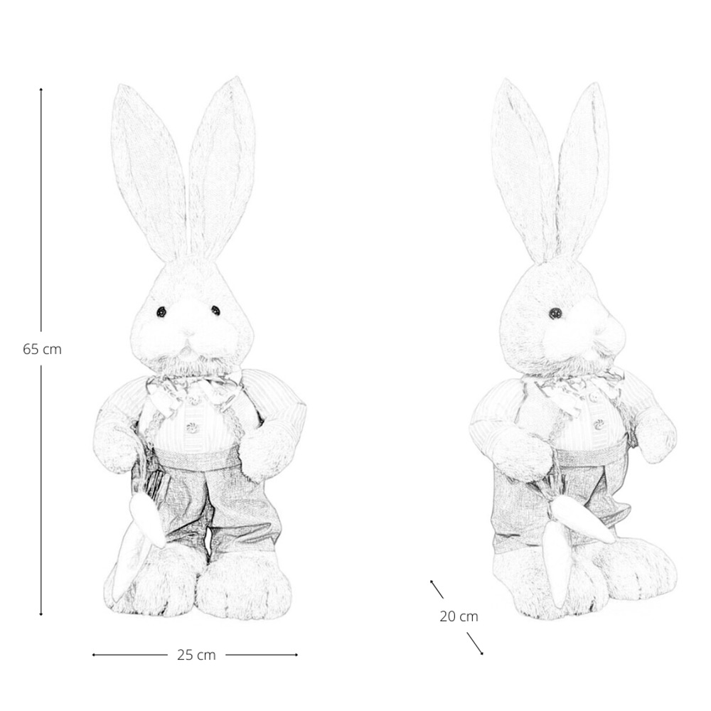 Realizzato con morbido rivestimento in pelo sintetico, presenta una curata camicia decorativa ed è arricchito da dettagli come la carota, che richiamano l’atmosfera pasquale e della primavera.