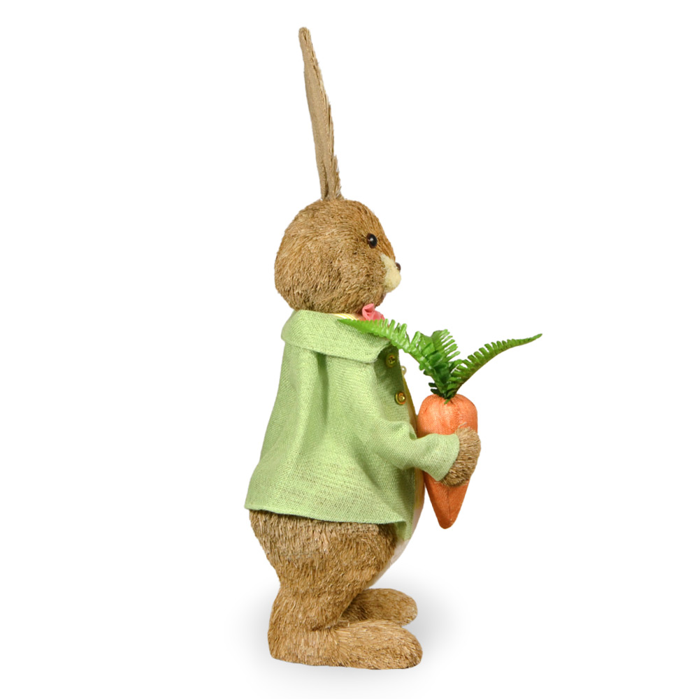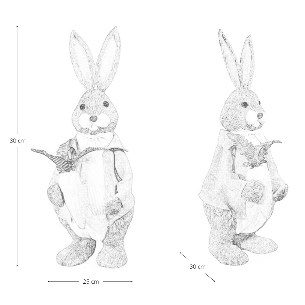 Realizzato con morbido rivestimento dall’effetto naturale, presenta un curato vestito decorativo ed è arricchito da dettagli come la carota, che richiamano l’atmosfera pasquale e della primavera.