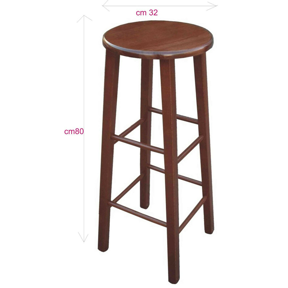 Coppia di sgabelli in legno massello di faggio con seduta rotonda e gambe dritte, finitura noce scuro.