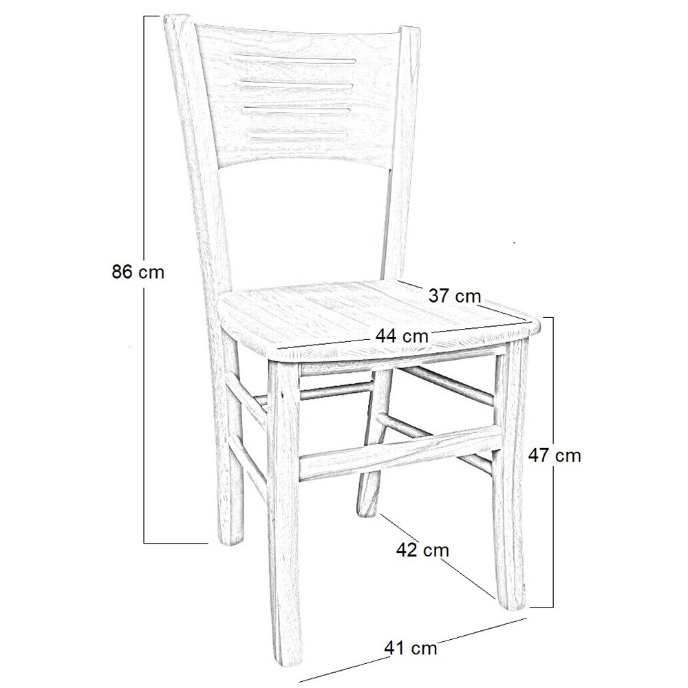 La seduta in legno ha una larghezza massima di 44 cm e una profondità massima di 37 cm.