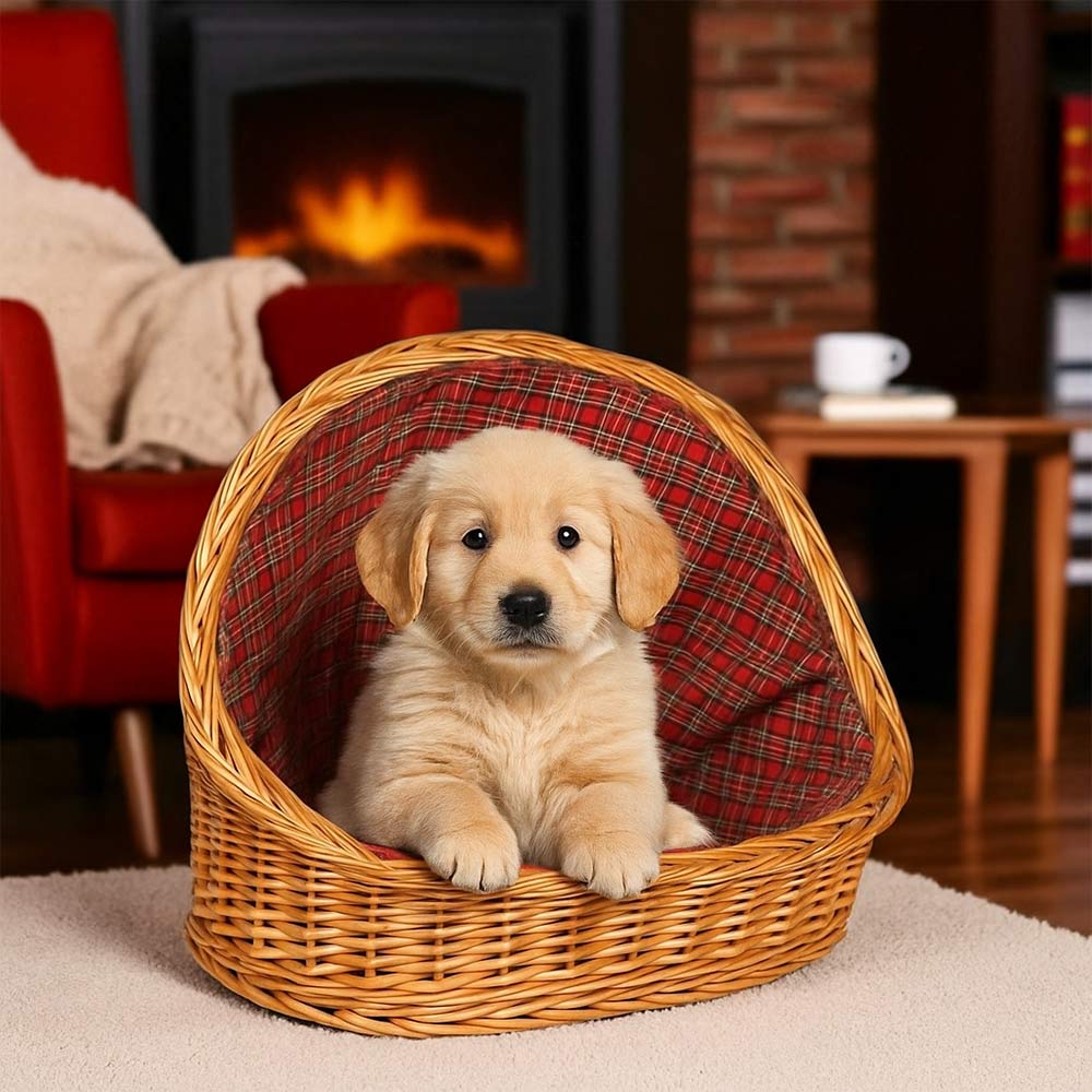 Realizzata con materiali naturali e completa di un rivestimento interno con un morbido cuscino in tessuto scozzese rosso, confortevole tutto l’anno.