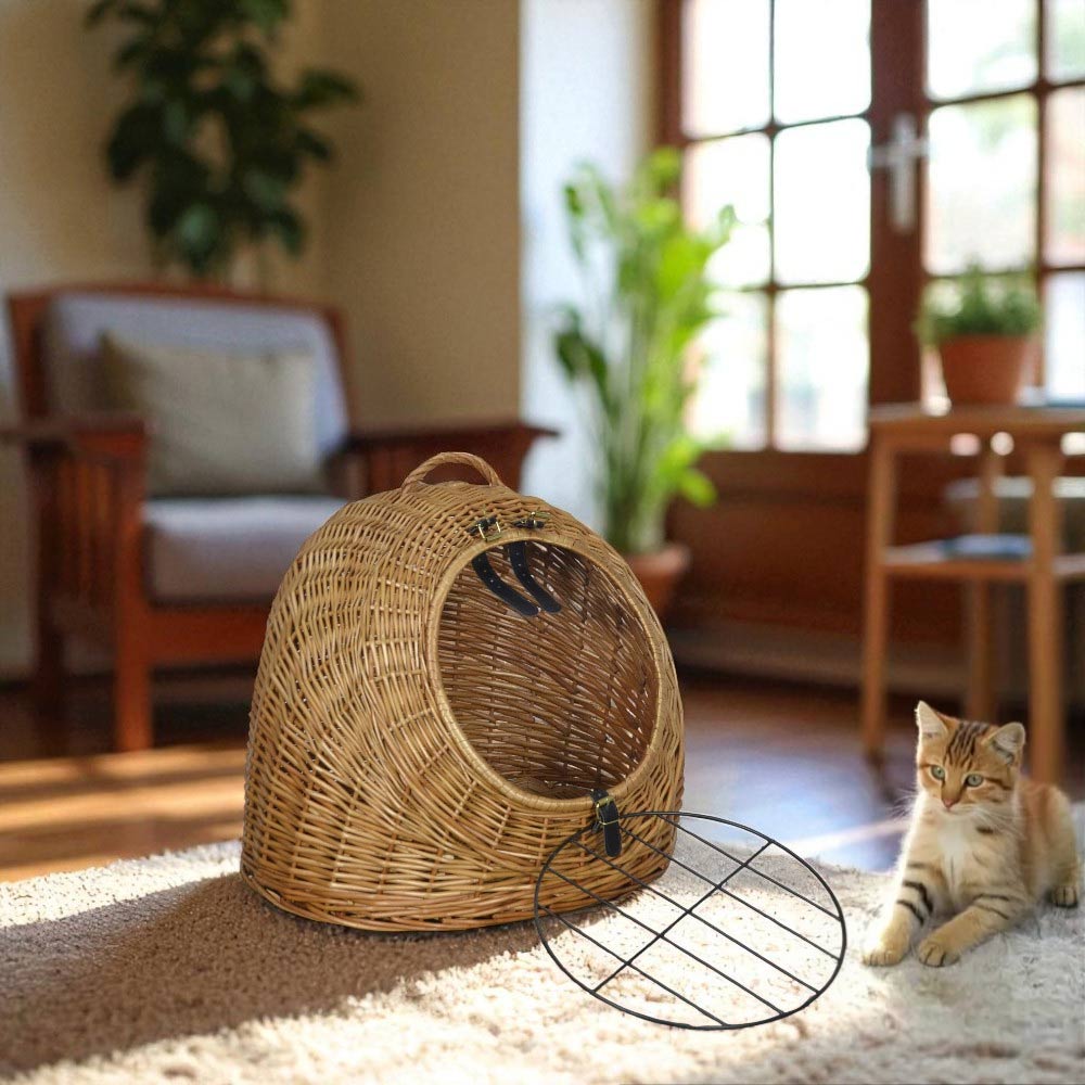 Questo trasportino per gatti in vimini intrecciato a mano è la soluzione perfetta per chi cerca uno stile naturale e funzionale.