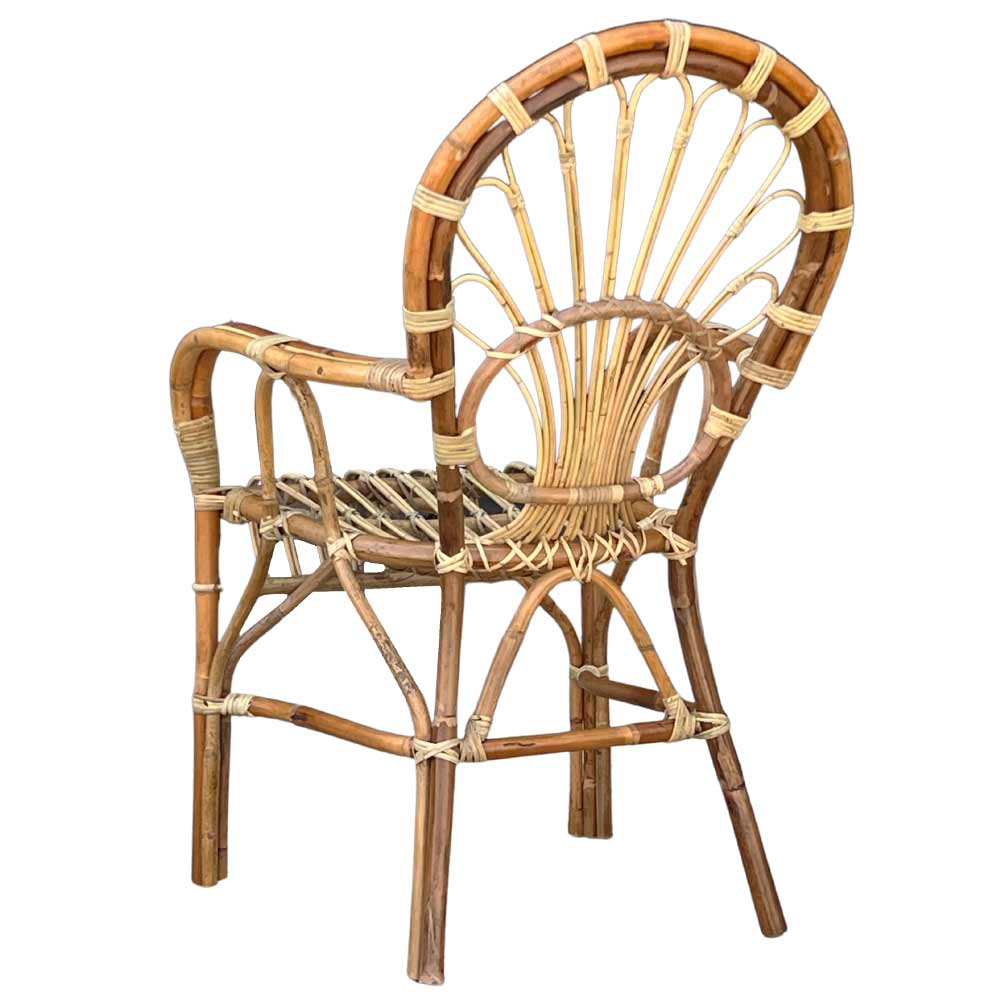 Questa elegante poltrona sedia Big Sole è realizzata con materiali naturali come il bambù e il giunco intrecciato.
