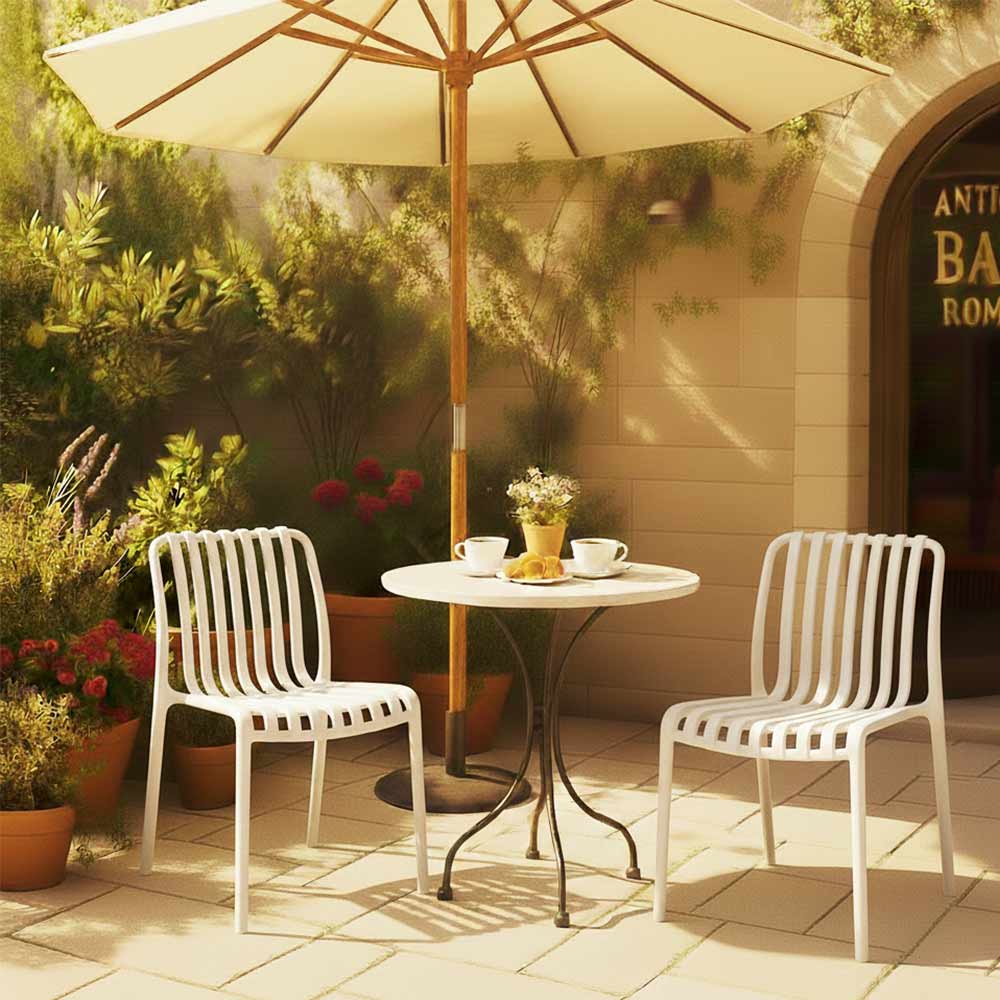Impilabile e pratica, rappresenta una soluzione ideale per arredare ambienti esterni come giardini, terrazzi e dehors, ma si adatta perfettamente anche ad ambienti interni come casa, bar e locali.