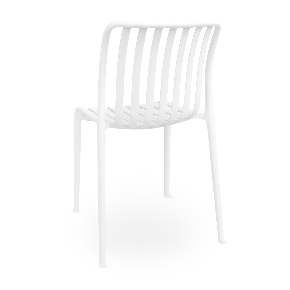 La sedia Iside è realizzata in un unico monoblocco in plastica bianca dal design moderno, leggero e originale.