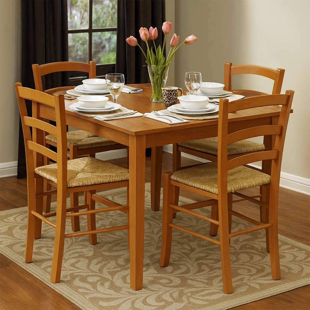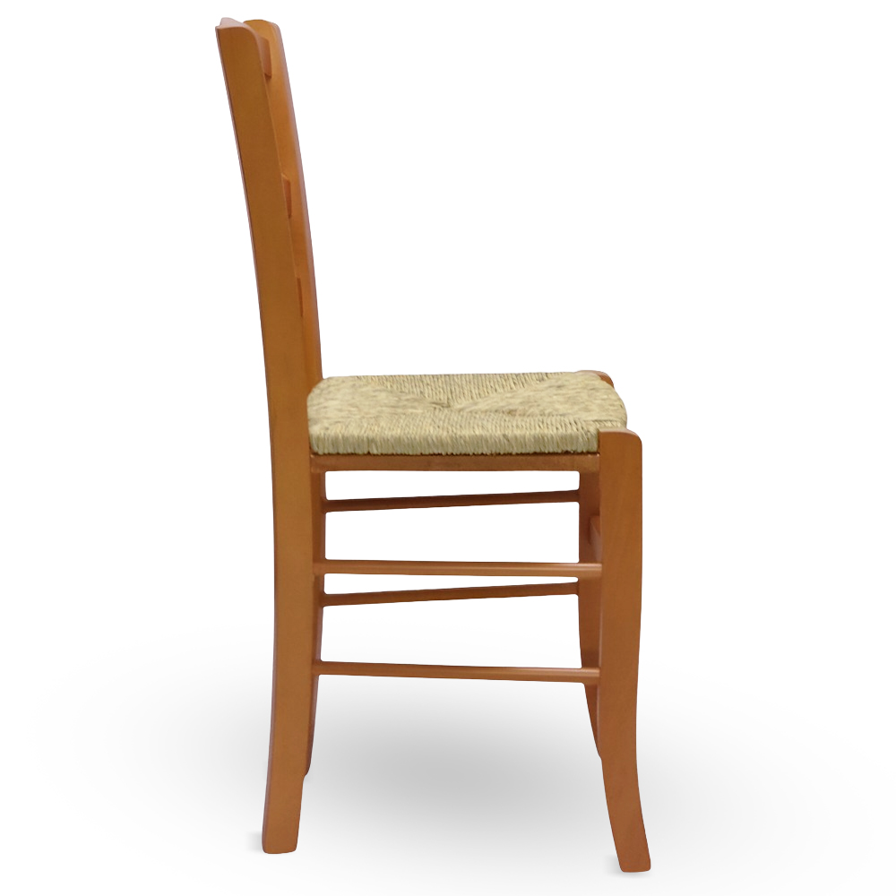 La seduta in paglia palustre è resistente e semplice da sostituire, grazie al pratico fissaggio con viti alla struttura.
