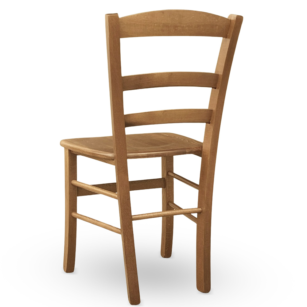 La struttura è in resistente legno di faggio italiano, mentre la seduta è in legno massello noce chiaro
