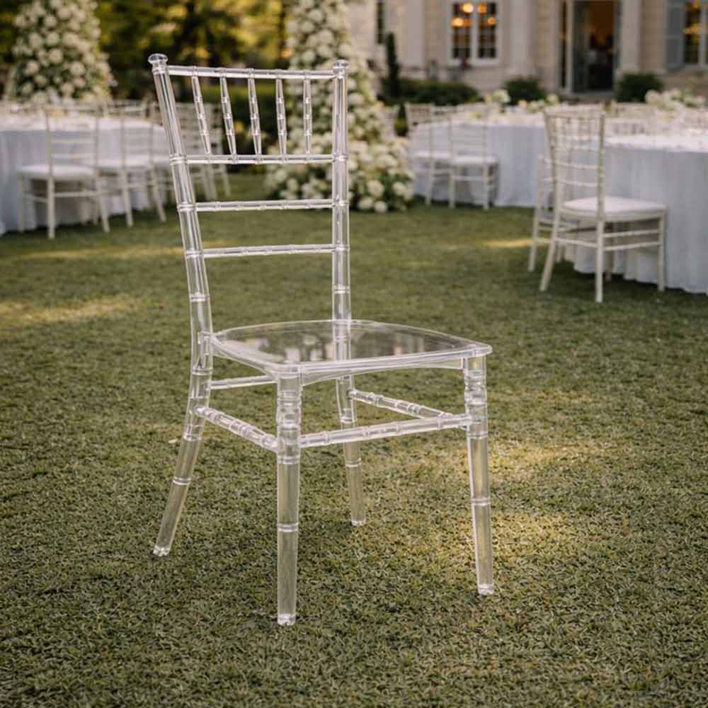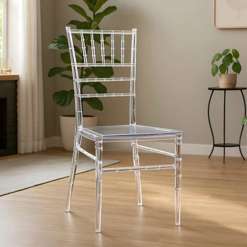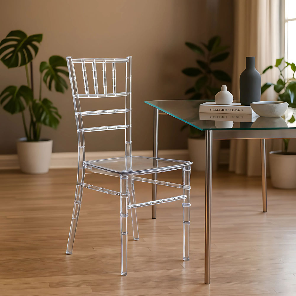Design elegante e ricercato: sedia Chiavarina in policarbonato trasparente, perfetta per ambienti moderni e raffinati.