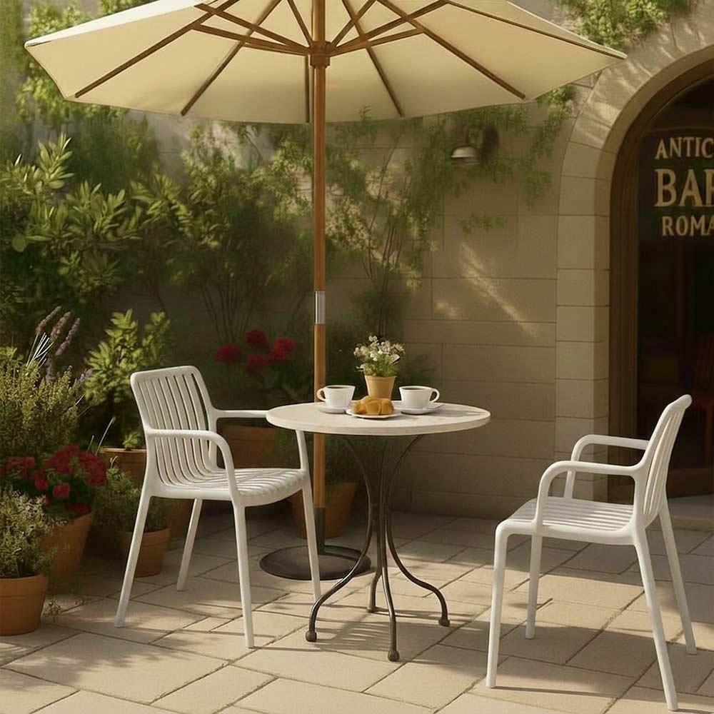 Impilabile e pratica, rappresenta una soluzione ideale per arredare ambienti esterni come giardini, terrazzi e dehors, ma si adatta perfettamente anche ad ambienti interni come casa, bar e locali.