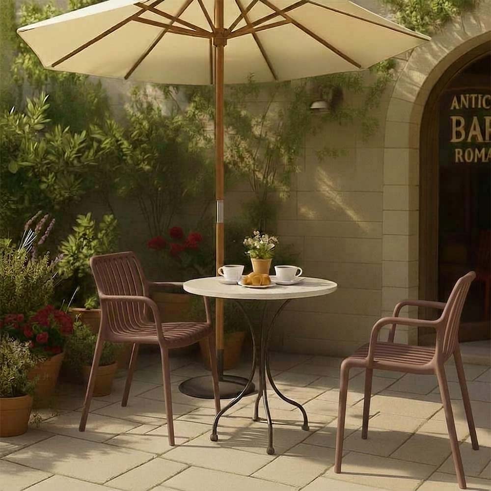 Impilabile e pratica, rappresenta una soluzione ideale per arredare ambienti esterni come giardini, terrazzi e dehors, ma si adatta perfettamente anche ad ambienti interni come casa, bar e locali.