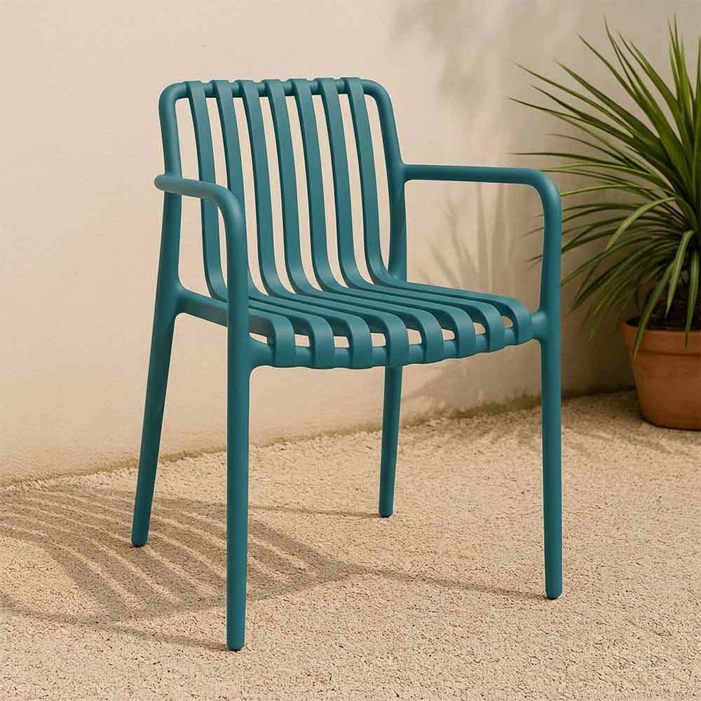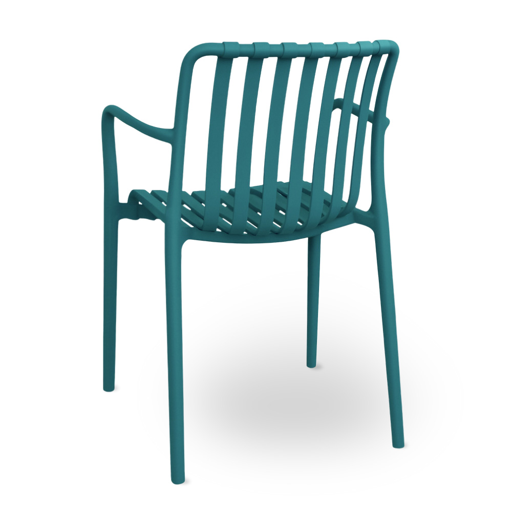 Sedia Iside impilabile unico monoblocco con braccioli, verde petrolio modello comfort.