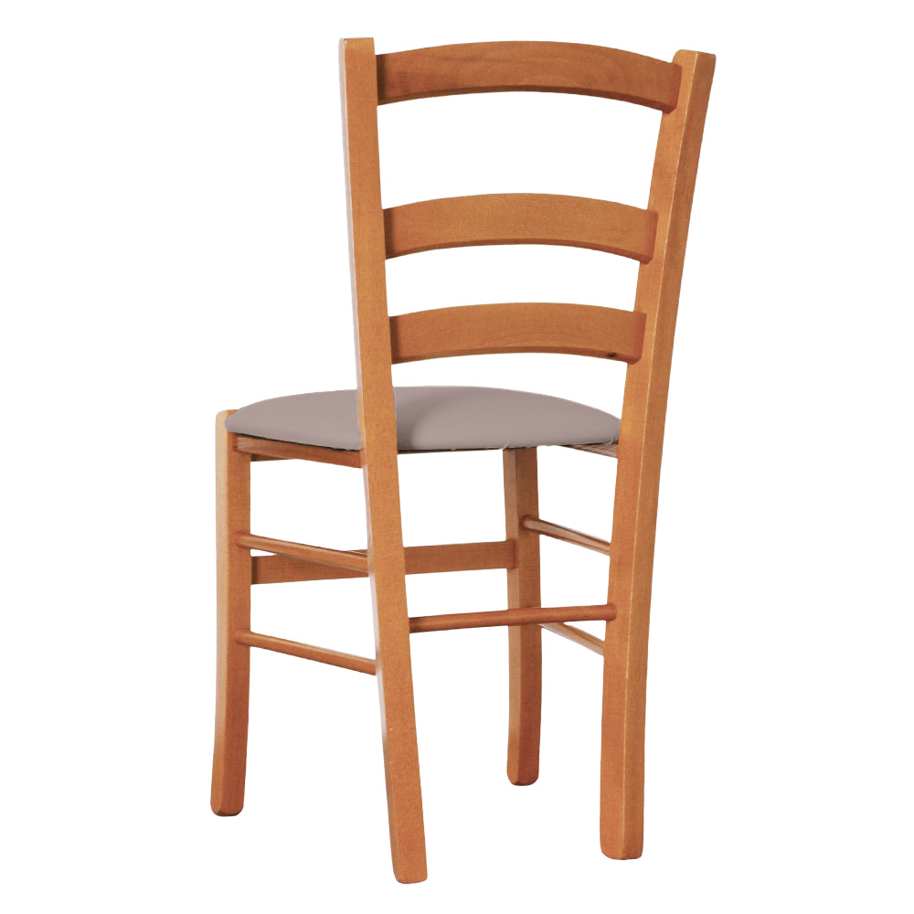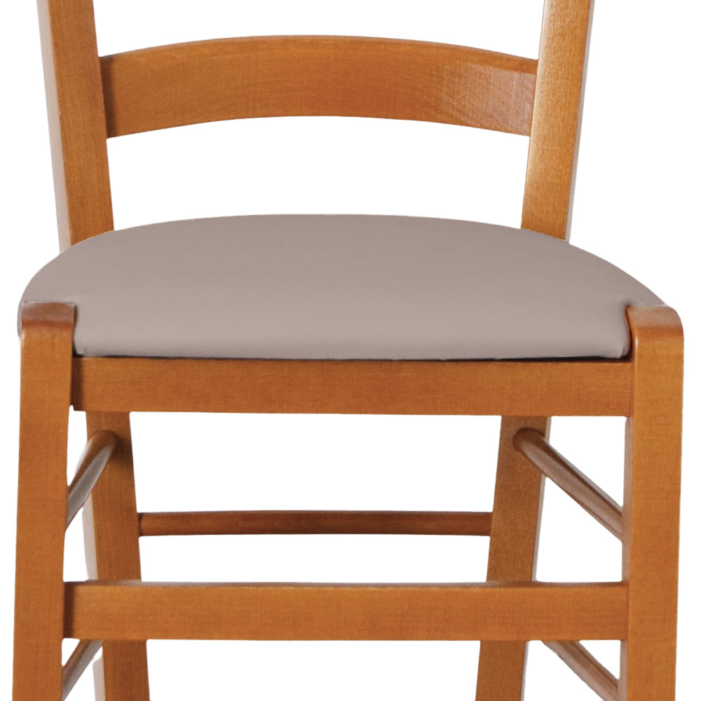 Sedia in legno massiccio con struttura robusta in legno di faggio italiano e seduta imbottita similpelle tortora