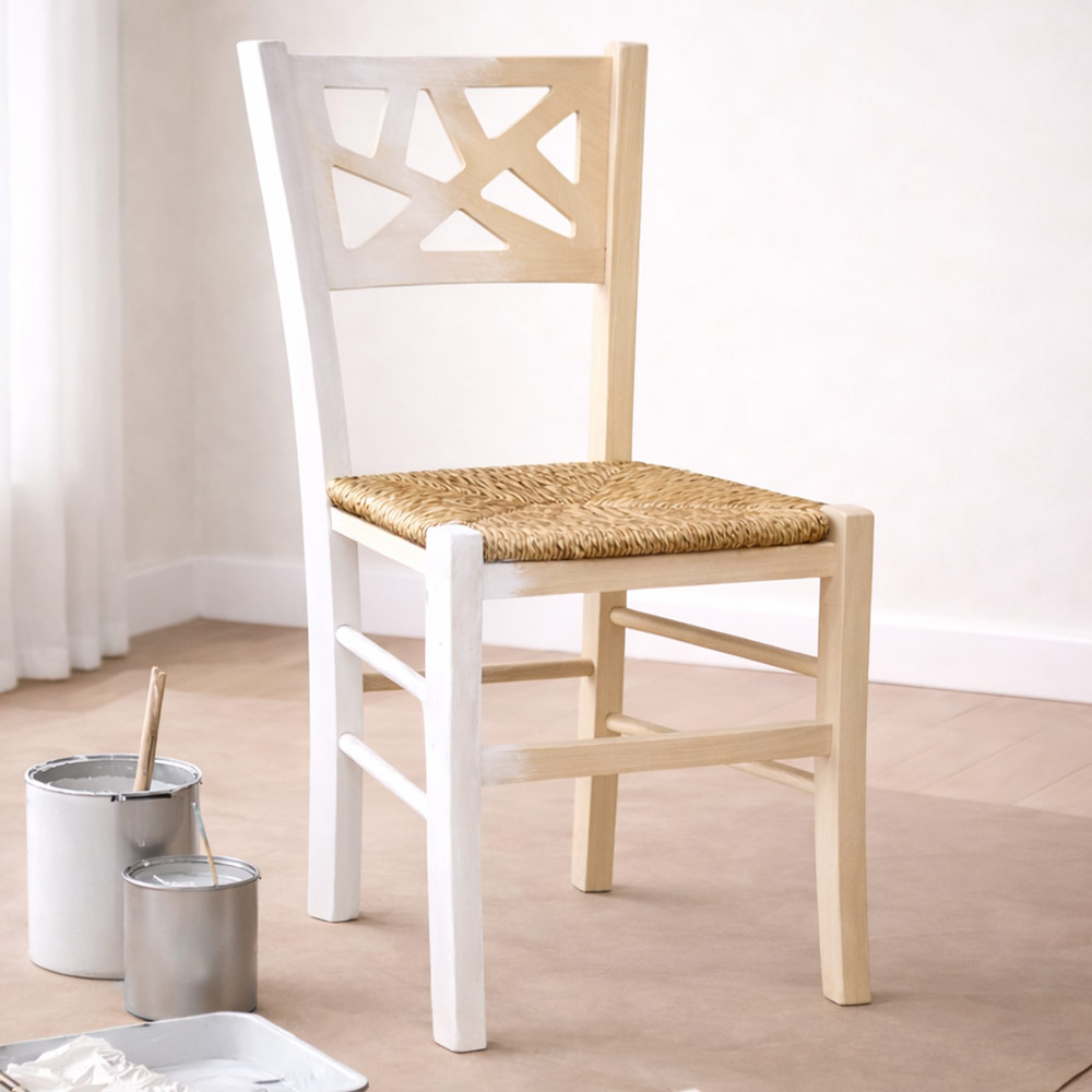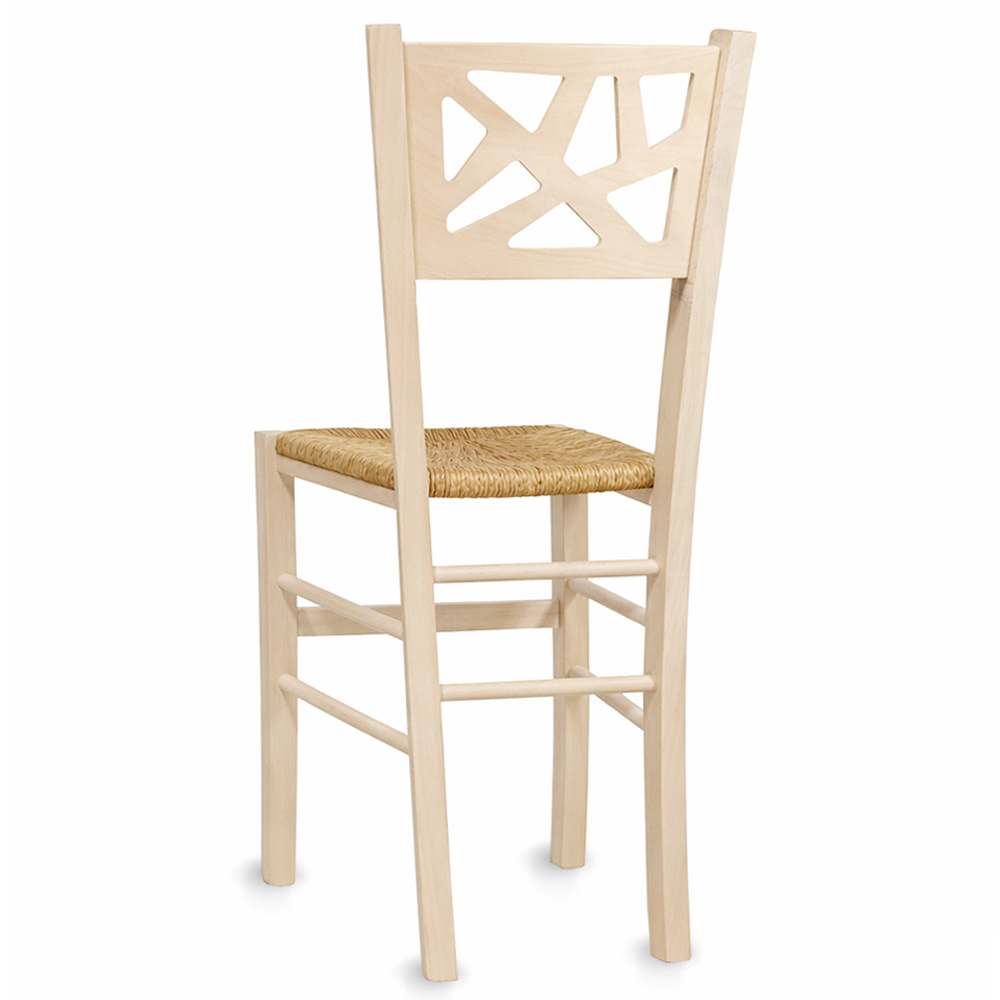 Sedia in legno grezzo da verniciare con seduta in paglia