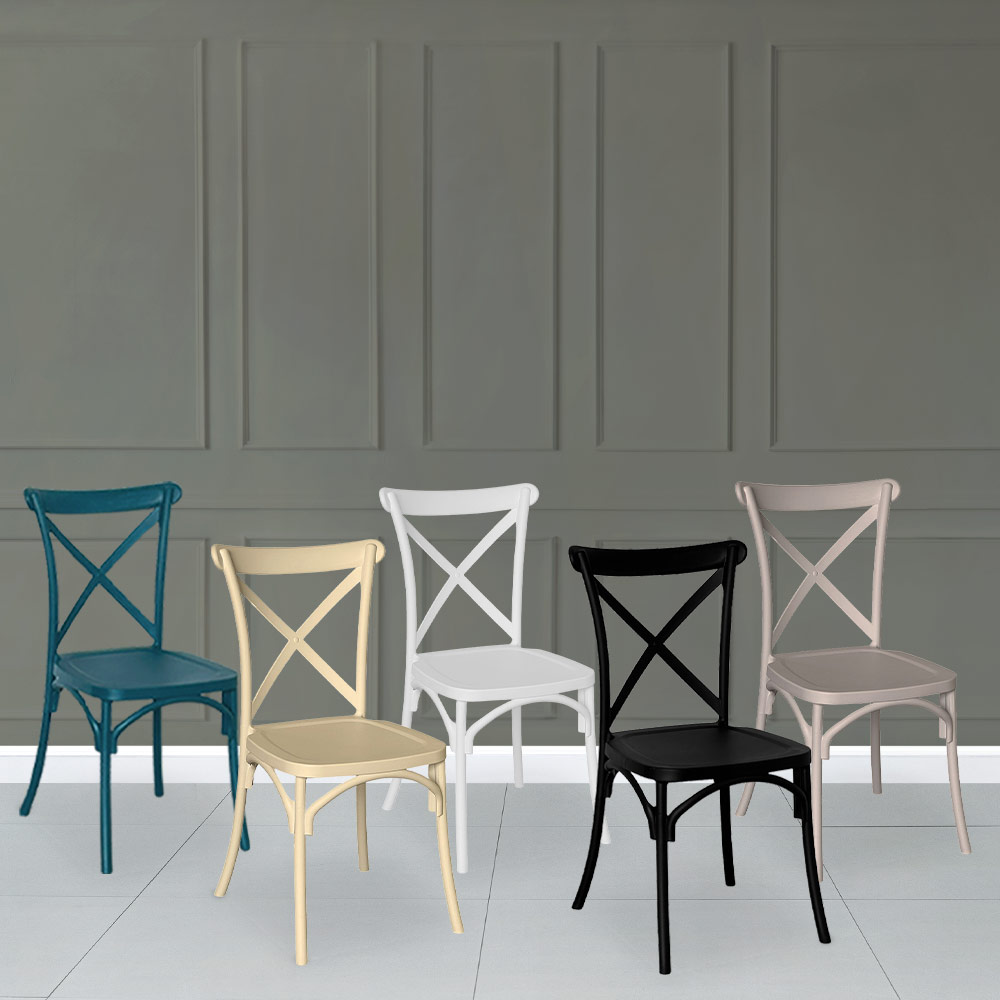 La sedia è impilabile fino a 10 unità, per un pratico stoccaggio e risparmio di spazio quando non in uso.