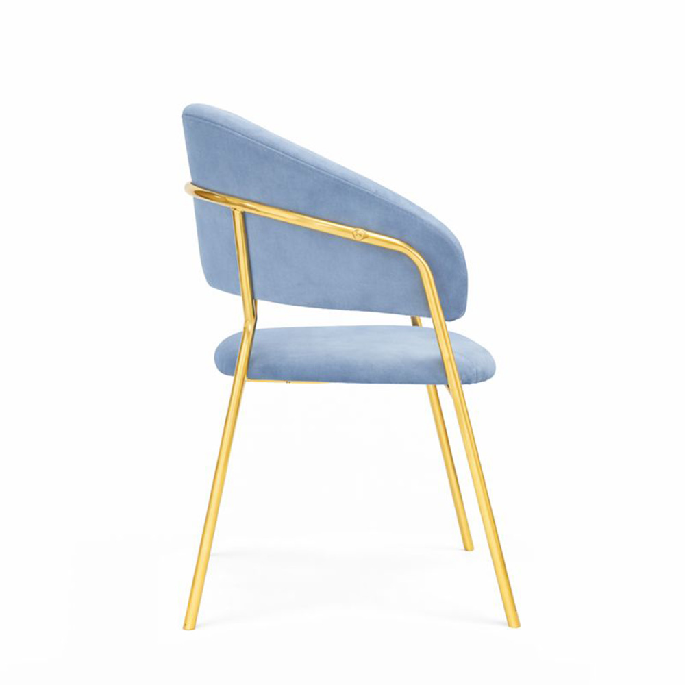 Le sedie da sala da pranzo set da 4 Aurelia con schienale avvolgente in velluto celeste è un complemento d’arredo elegante e confortevole, ideale per arredare con stile ambienti