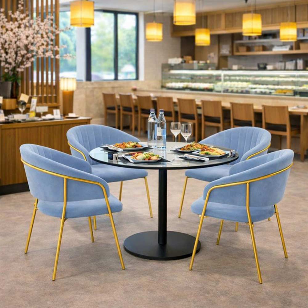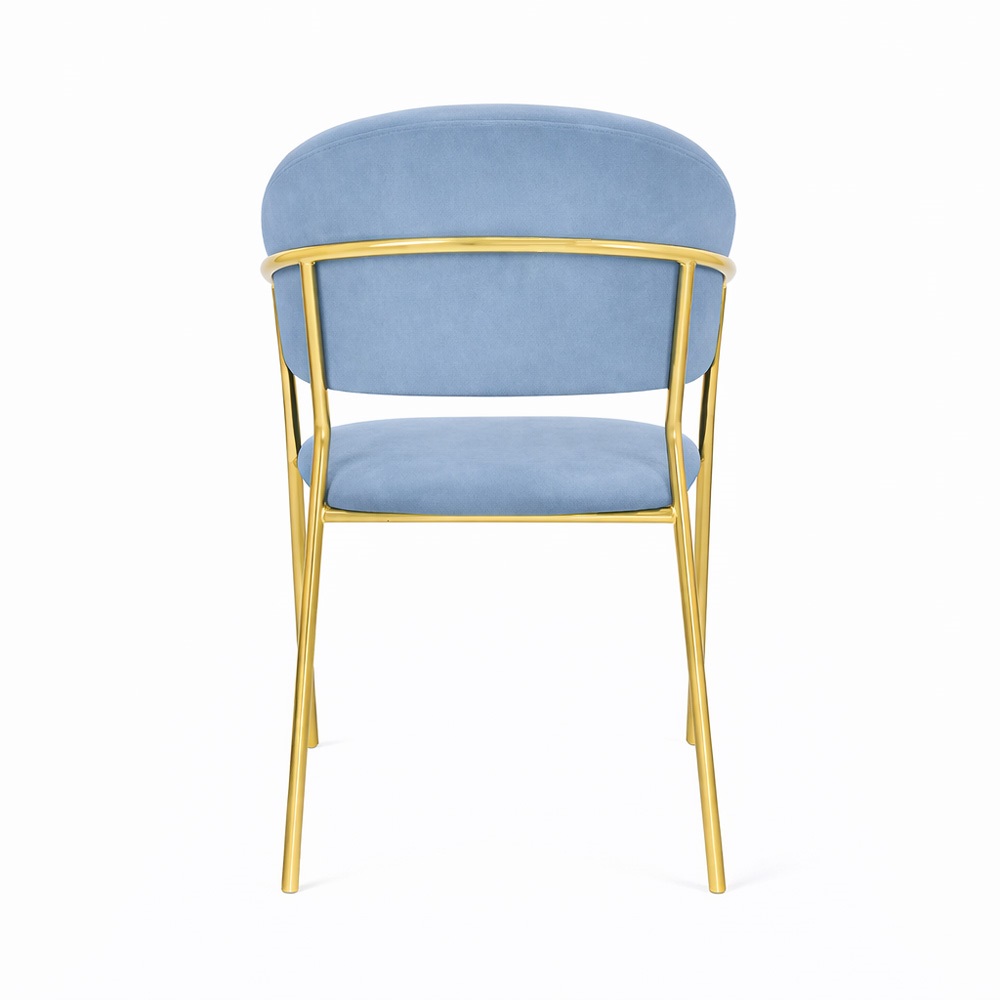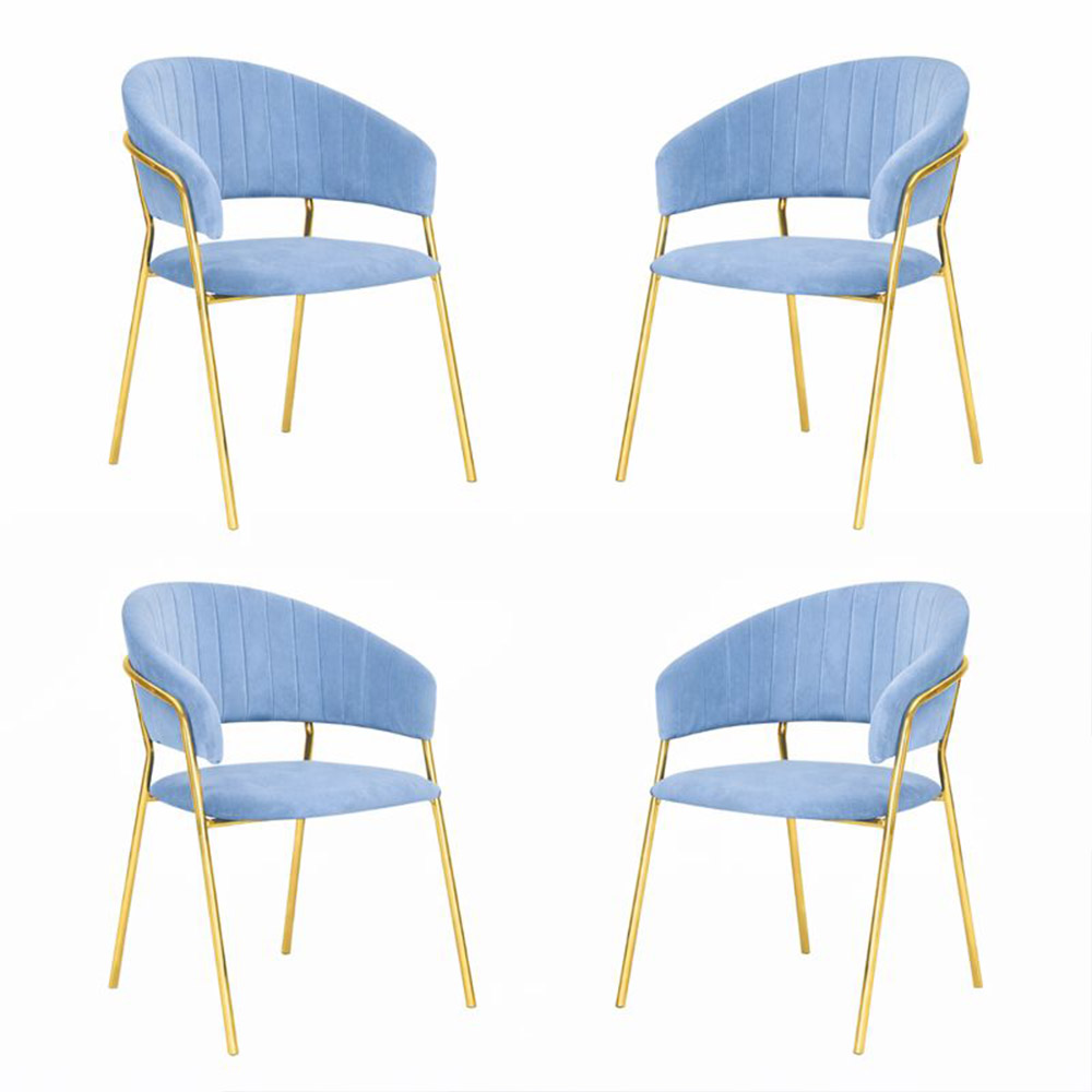 Set di sedie Aurelia da 4 in velluto celeste, dal design elegante e moderno: ideale per soggiorno, sala da pranzo o ambienti contemporanei.