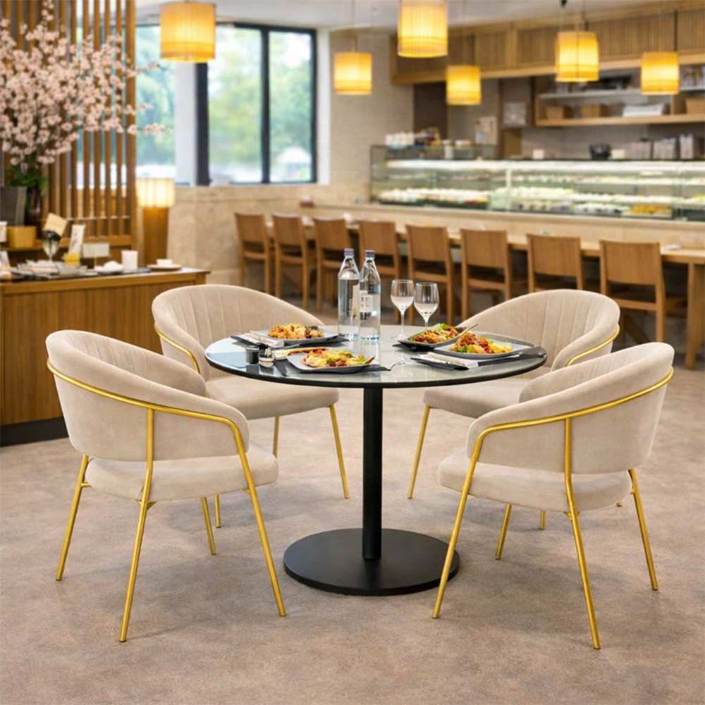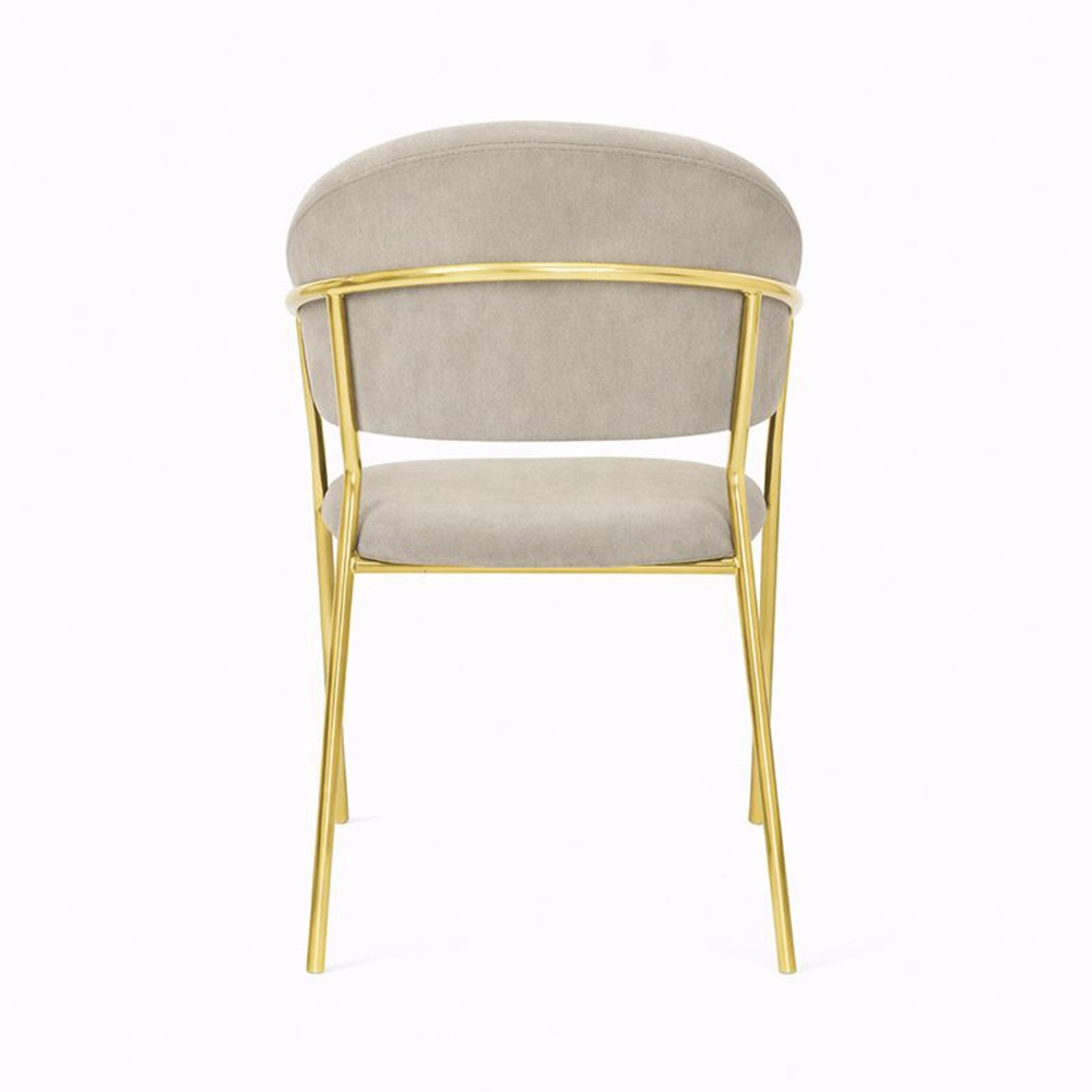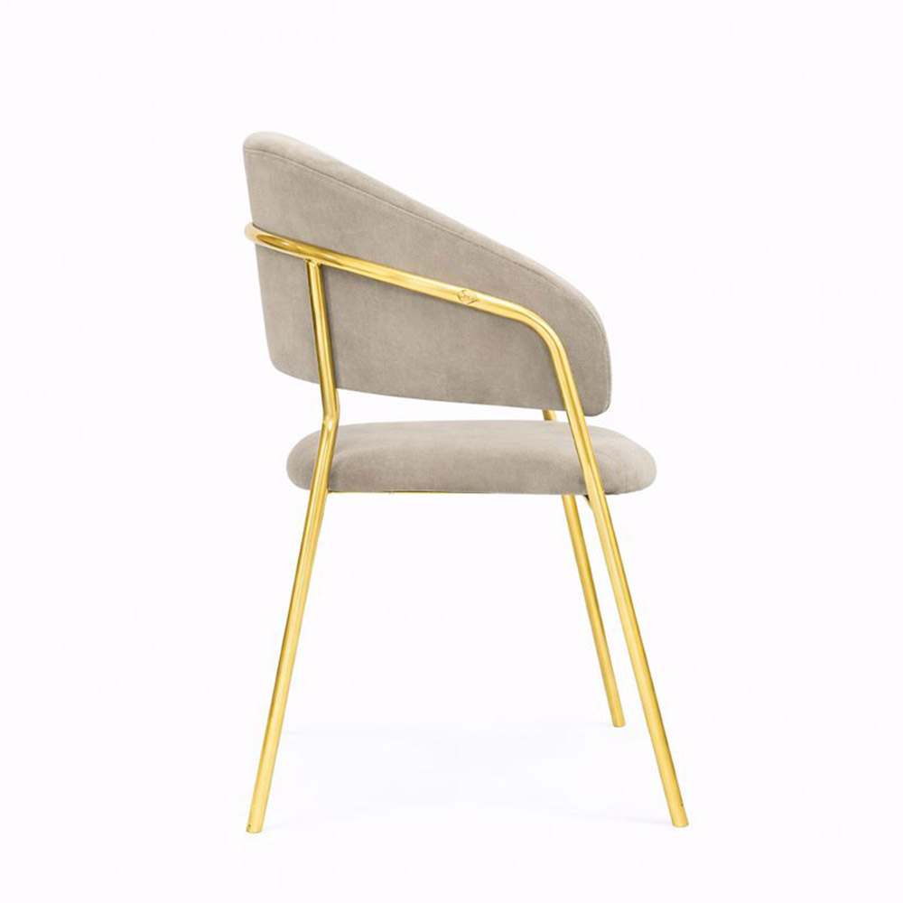 La struttura con gambe in metallo cromate color oro assicura solidità, stabilità e un design elegante, mentre l’imbottitura della seduta e dello schienale, unita alla presenza