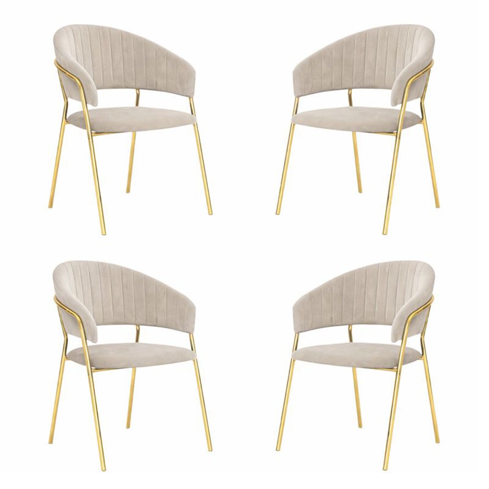 Set di sedie Aurelia da 4 in velluto grigio tortora, dal design elegante e moderno: ideale per soggiorno, sala da pranzo o ambienti contemporanei.