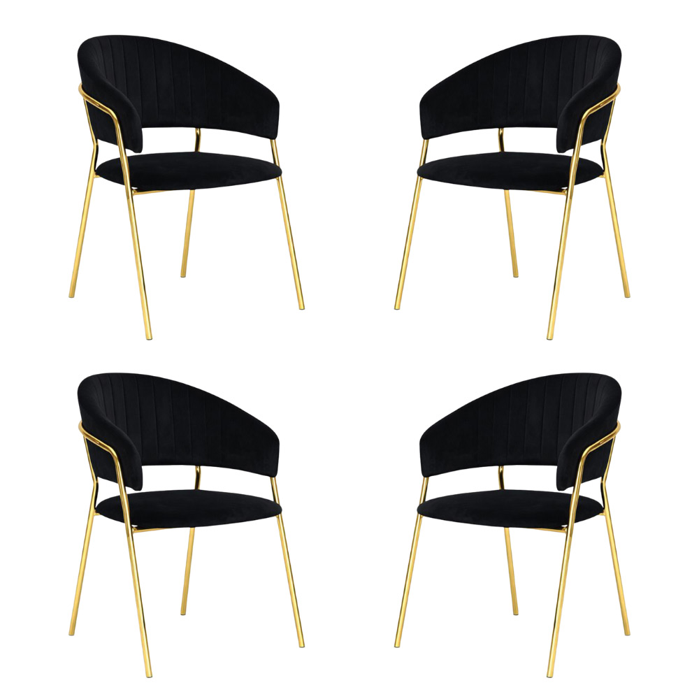 Set di sedie Aurelia da 4 in velluto nero, dal design elegante e moderno: ideale per soggiorno, sala da pranzo o ambienti contemporanei.