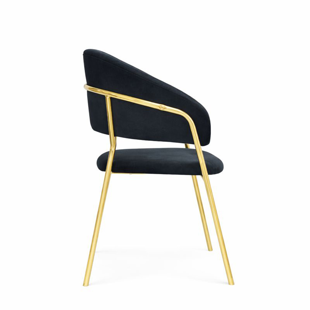 La struttura con gambe in metallo cromate color oro assicura solidità, stabilità e un design elegante, mentre l’imbottitura della seduta e dello schienale, unita alla presenza