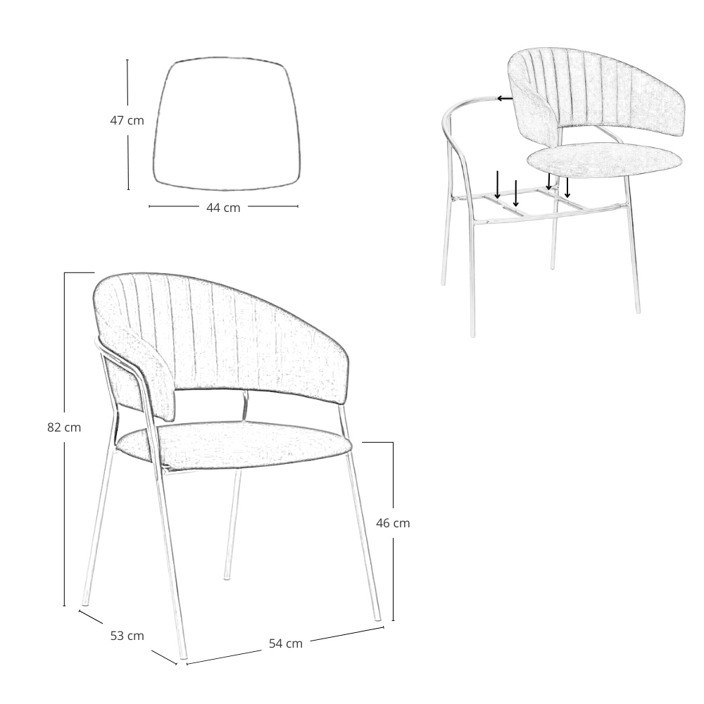 La struttura con gambe in metallo cromate color oro assicura solidità, stabilità e un design elegante, mentre l’imbottitura della seduta e dello schienale, unita alla presenza