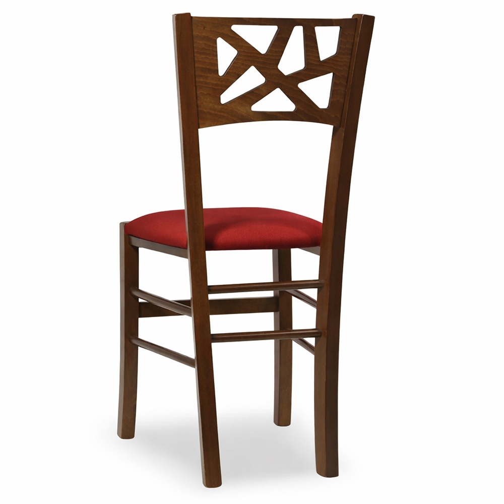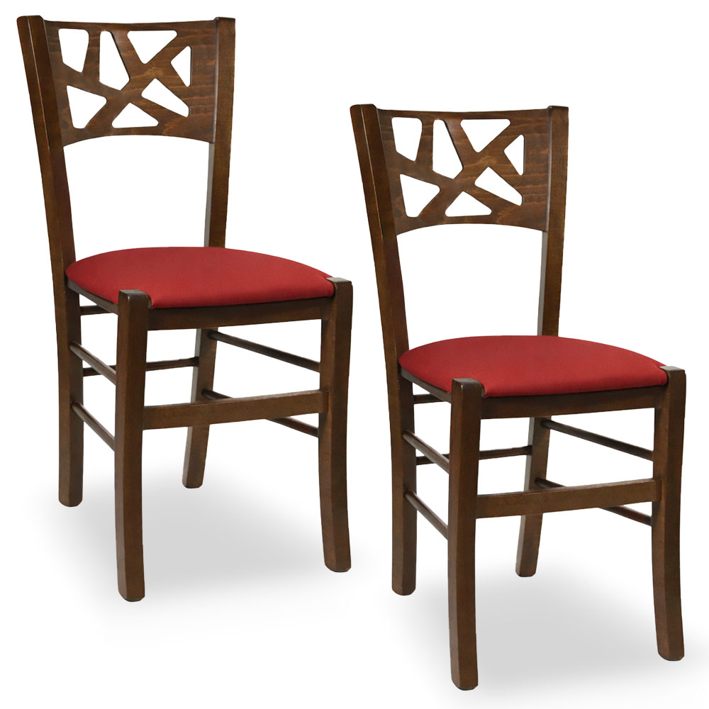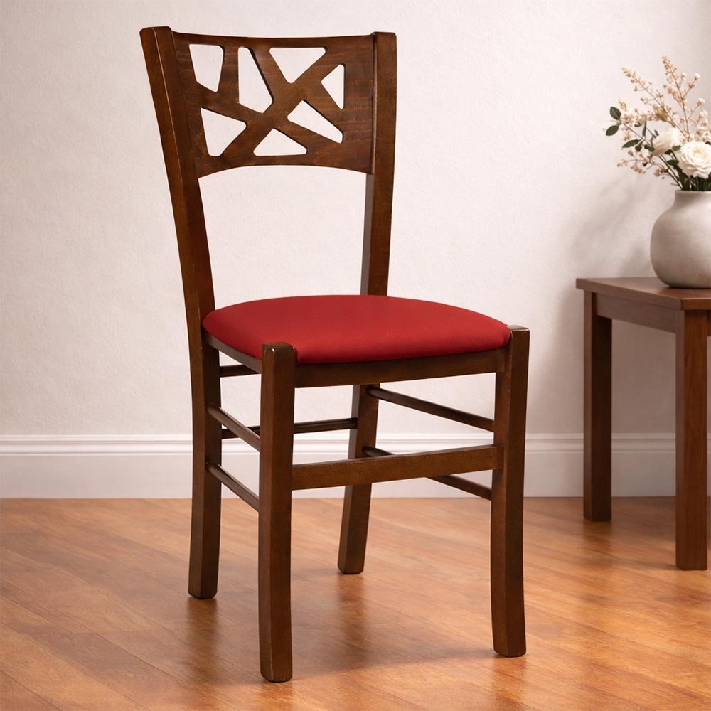 La sedia Sissy è interamente realizzata in legno, con una struttura robusta in faggio italiano e una seduta imbottita rivestita in similpelle rossa, perfetta per chi cerca comfort e stile in un'unica soluzione.