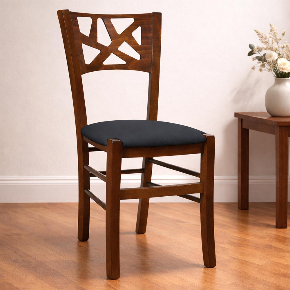 La sedia Sissy è interamente realizzata in legno, con una struttura robusta in faggio italiano e una seduta imbottita rivestita in similpelle atracite, perfetta per chi cerca comfort e stile in un'unica soluzione.