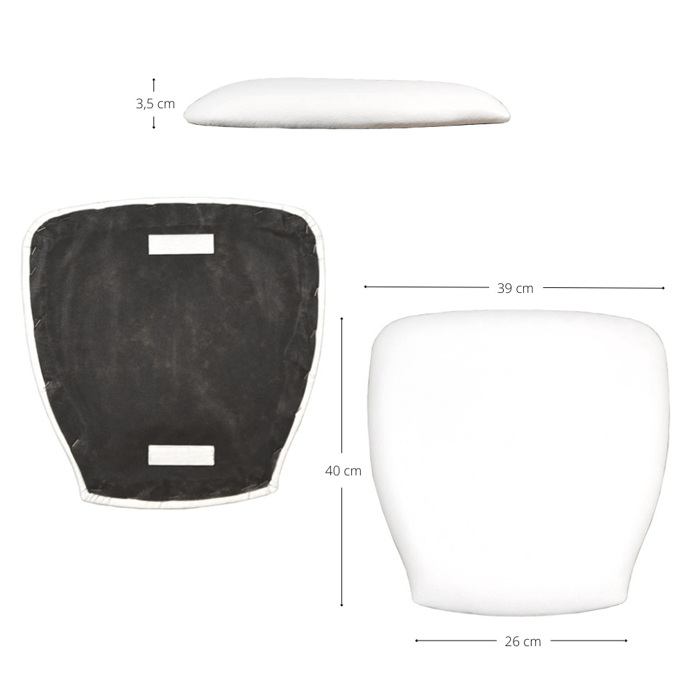 Cuscino color bianco incluso: in similpelle, fissaggio con velcro per maggiore comfort e stabilità.