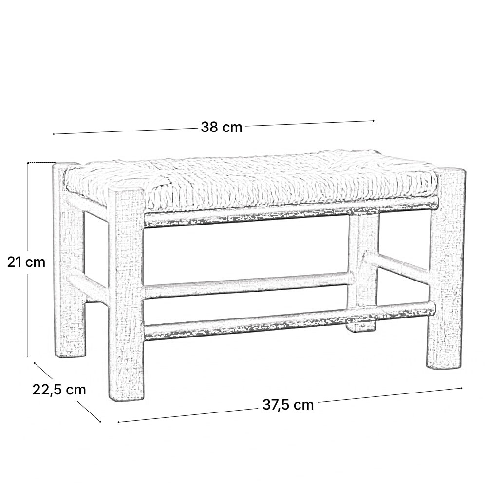 Dimensioni: altezza 21 cm; base a terra di 37,5 × 22,5 cm; seduta 38 × 22,5 cm.