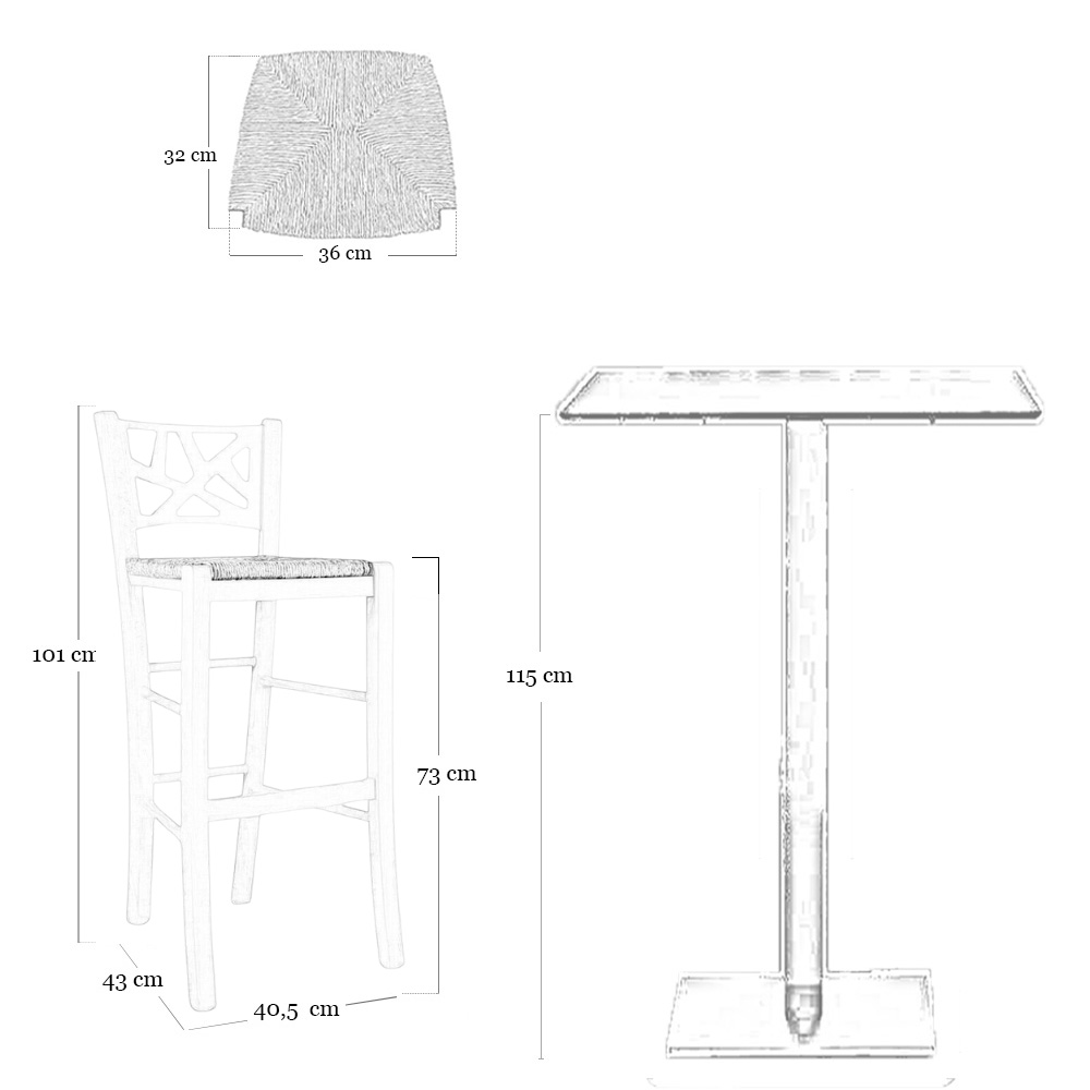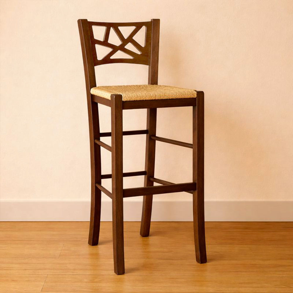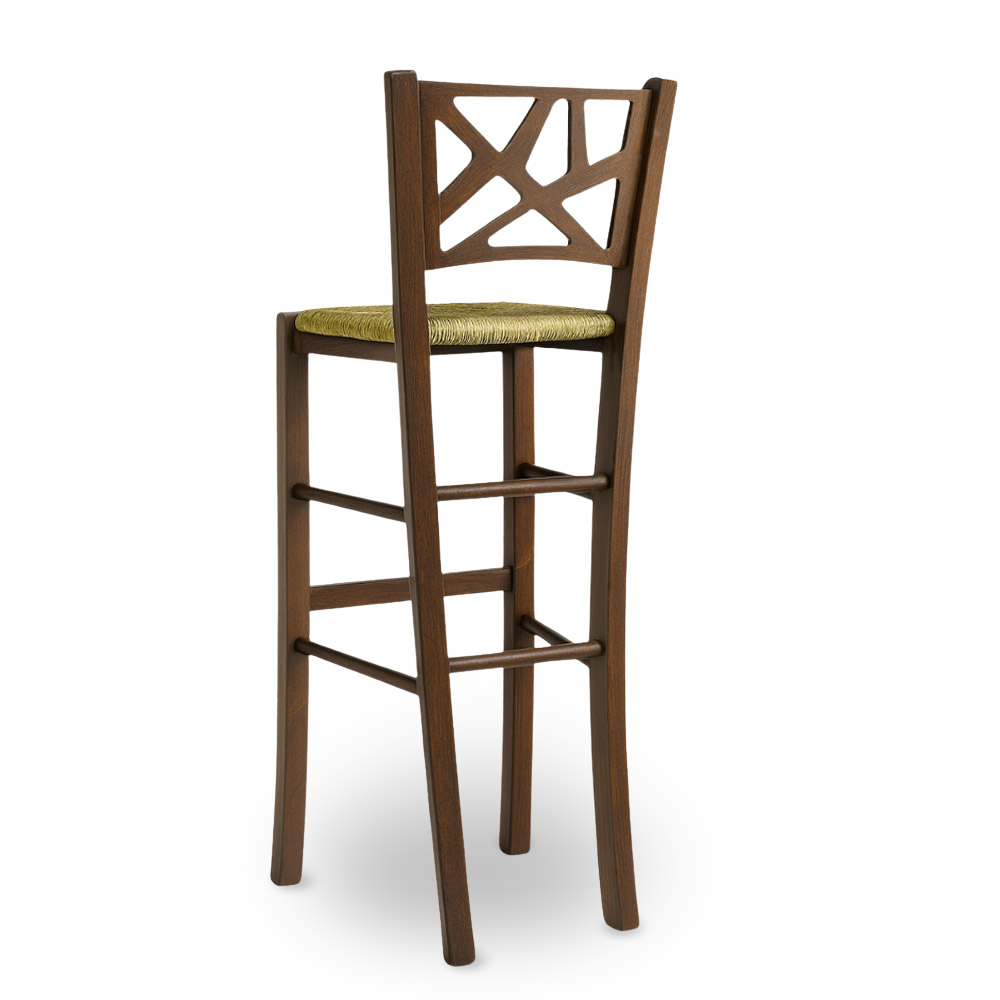 con altezza cm 73 cm da terra alla seduta in tinta noce scuro con seduta in paglia