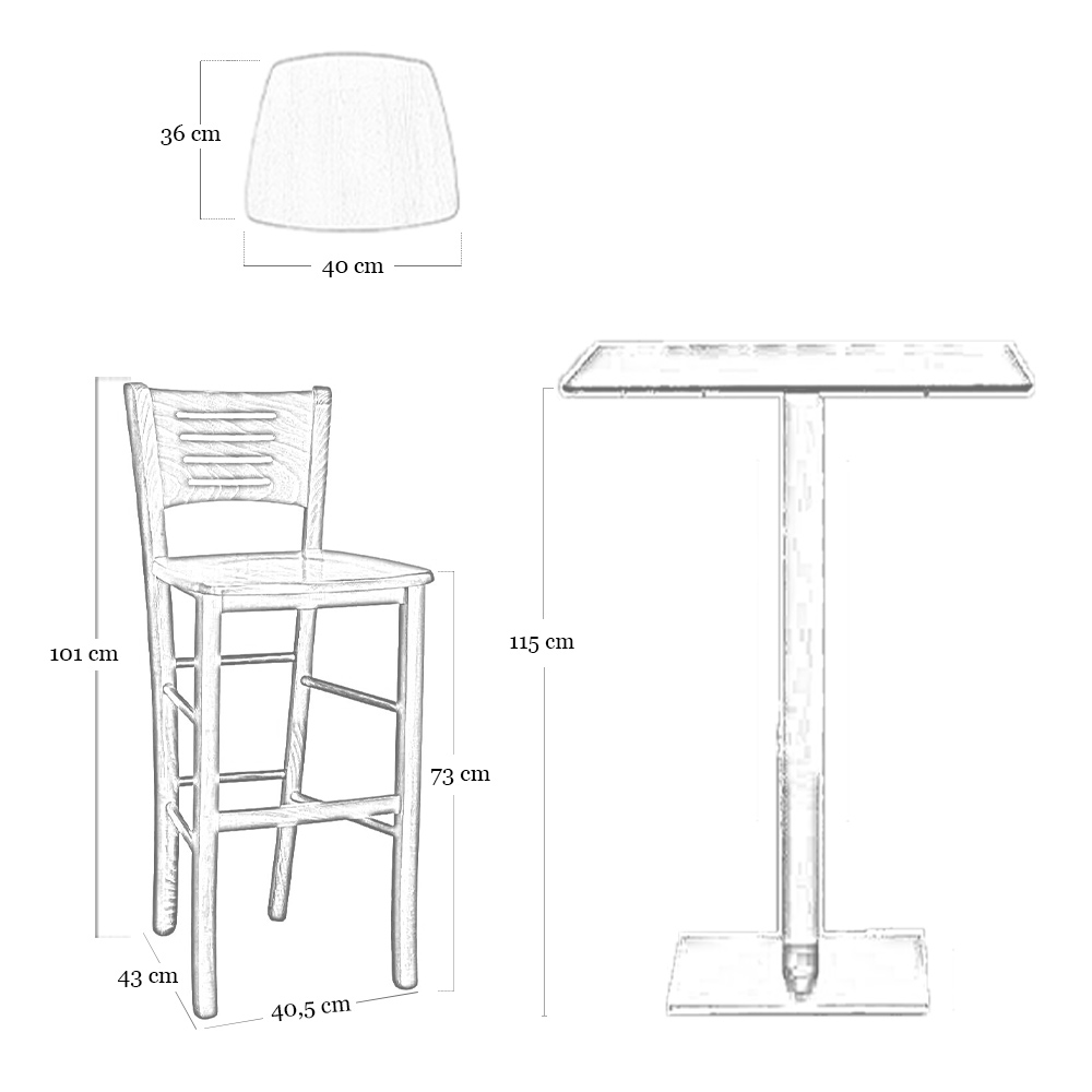 Lo sgabello si adatta a tavoli o piani alti da cm 100 a cm 115