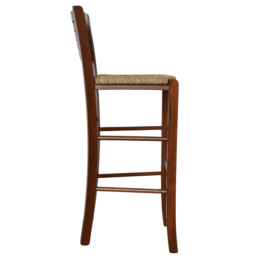 Coppia di sgabelli verona in legno noce scuro con seduta in paglia