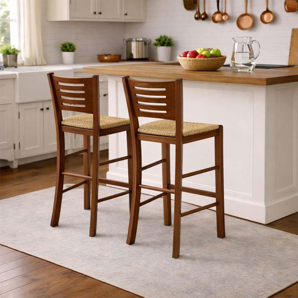 Coppia di sgabelli verona in legno noce scuro con seduta in paglia