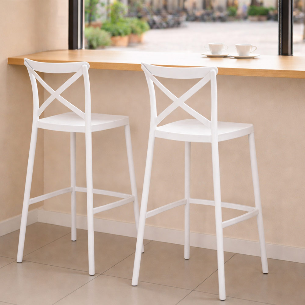 Sgabelli alti da bar set da 2 bianco in plastica polipropilene unico monoblocco