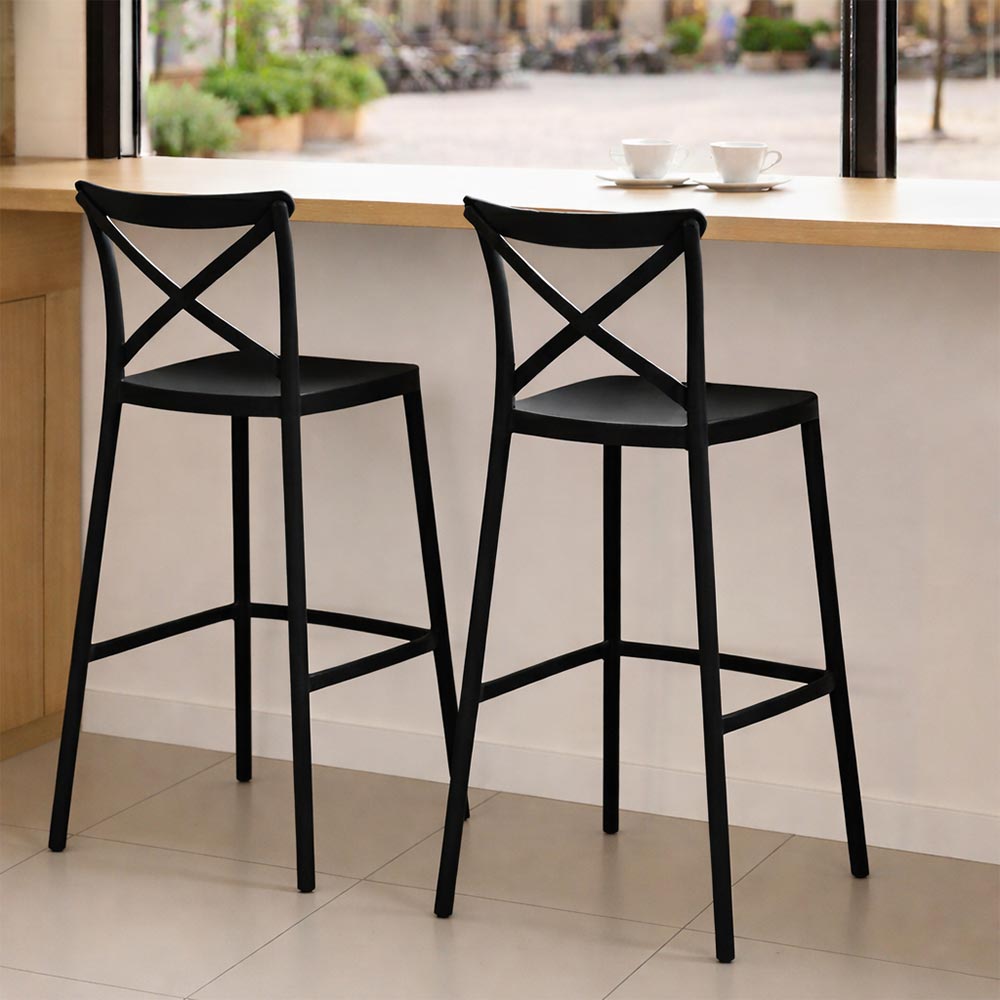 Sgabelli alti da bar set da 2 nero in plastica polipropilene unico monoblocco