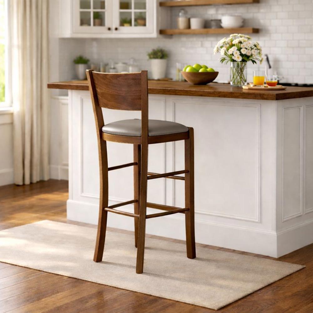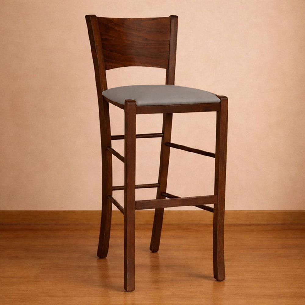 Sgabello lucy in legno noce scuro con seduta similpelle grigio tortora