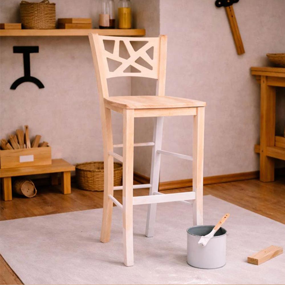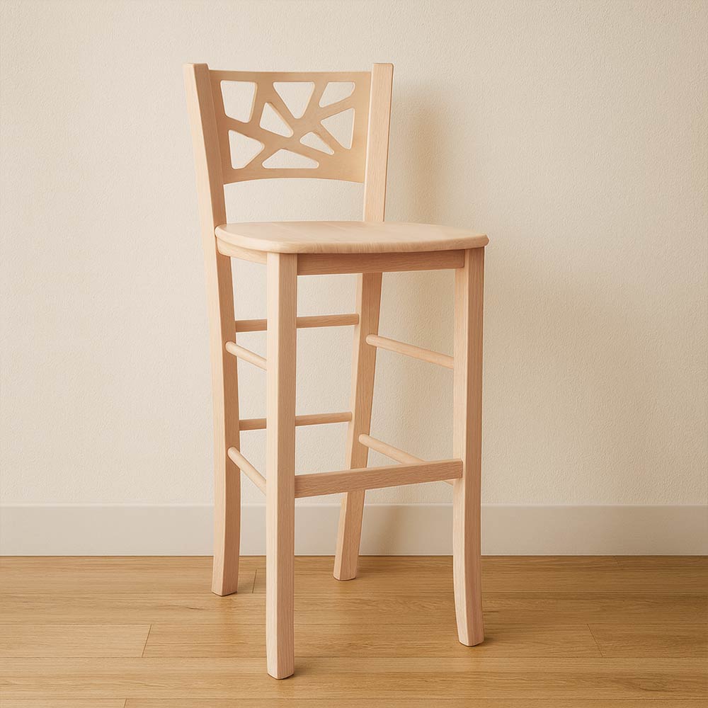 Sgabello sissy in legno grezzo da verniciare h 73 con seduta massello