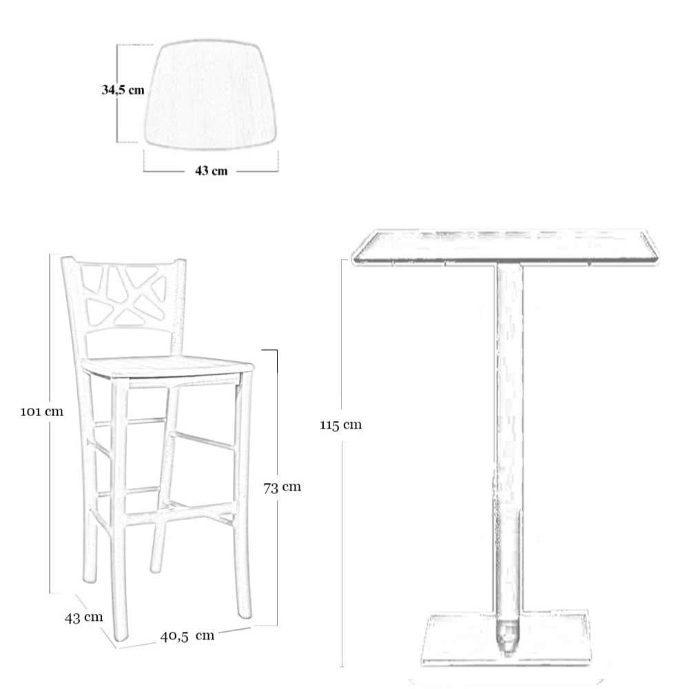 Dimensioni altezza da terra alla seduta cm 73 da terra alla spalliera cm 101
