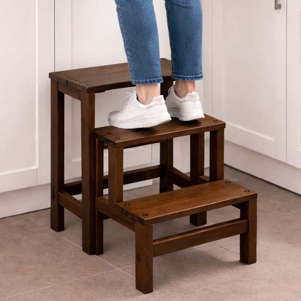 Struttura solida e multiuso, ideale come sgabello con gradini a scomparsa, scaletta pieghevole in legno o supporto domestico.