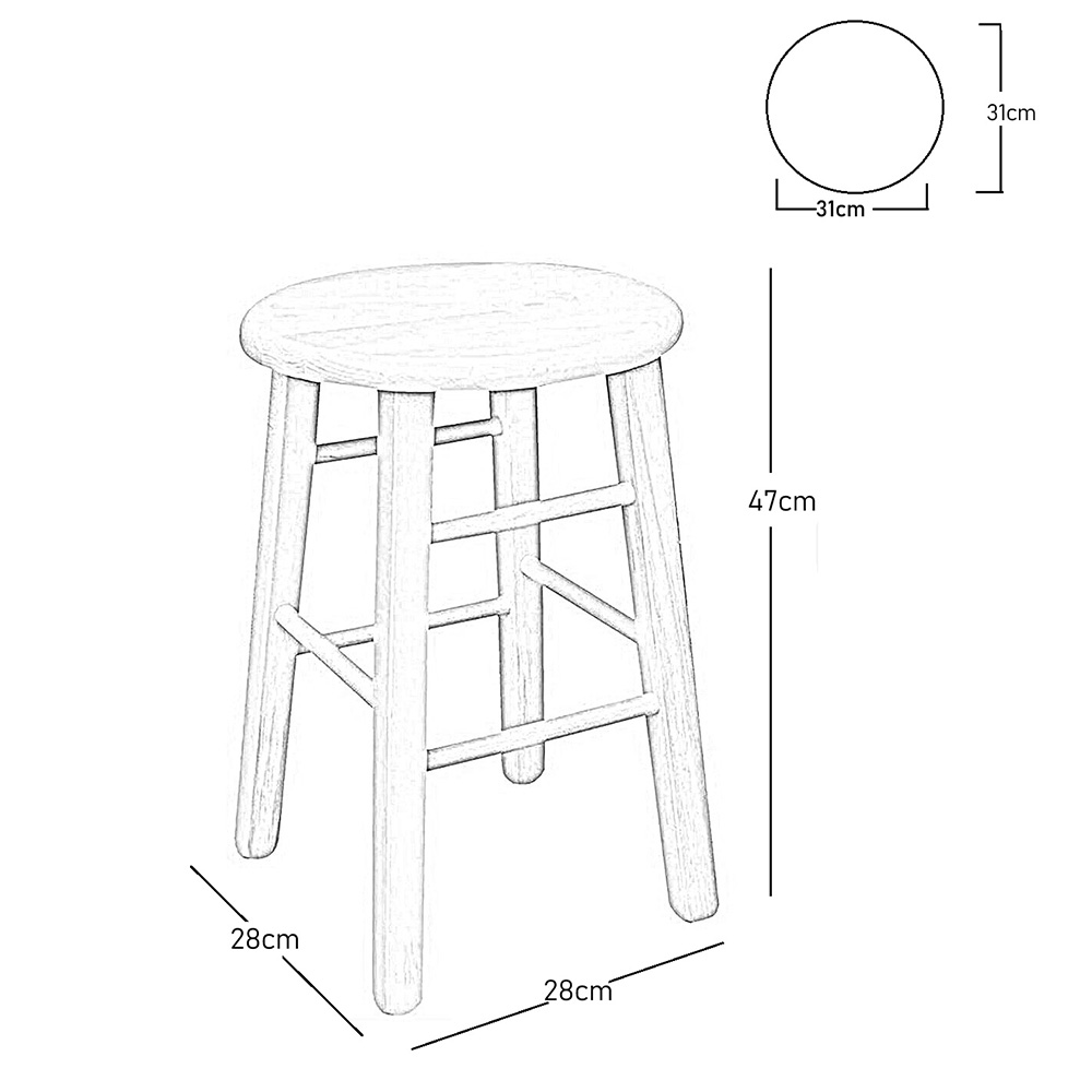 Misure principali: altezza da terra alla seduta 47 cm, diametro della seduta 31 cm.